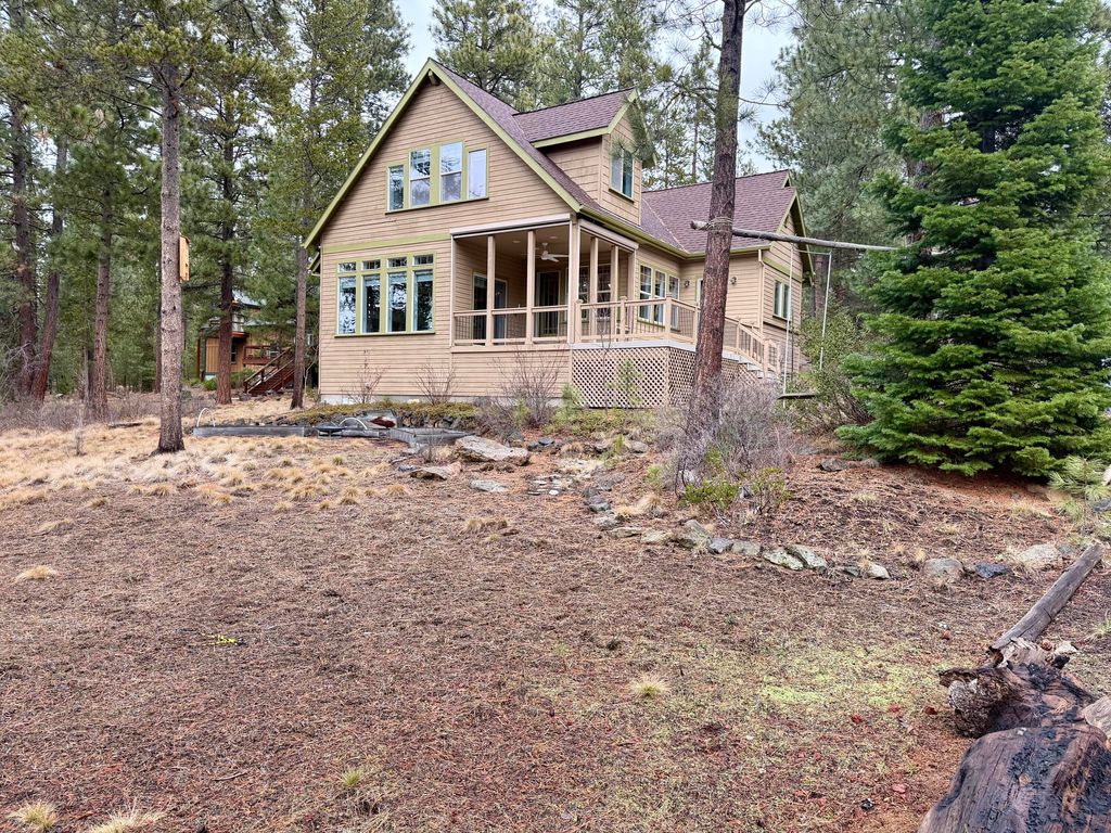 Welcome to your riverfront retreat on the Big Deschutes River, nestled in the heart of the National Forest. This .36-acre property borders common ground along the river, with bridges inviting you to explore acres of hiking trails. Step inside to 2,360 sq ft of comfortable living, featuring 3 bedrooms and 2.5 baths. The living room features river views and a cozy fireplace insert for relaxing evenings. The main-level primary suite invites you to unwind with a soaking tub, walk-in shower, and private sauna. Upstairs, two additional bedrooms, a guest bath, and a flexible bonus room offer space for everyone. Enjoy morning coffee or evening cocktails on the spacious deck, soaking up the sights and sounds of nature. With a heated two-car garage, workshop, and thoughtful details throughout, this home is ready to welcome you.