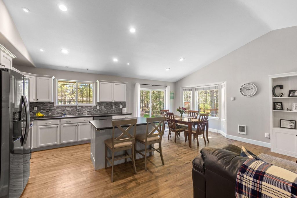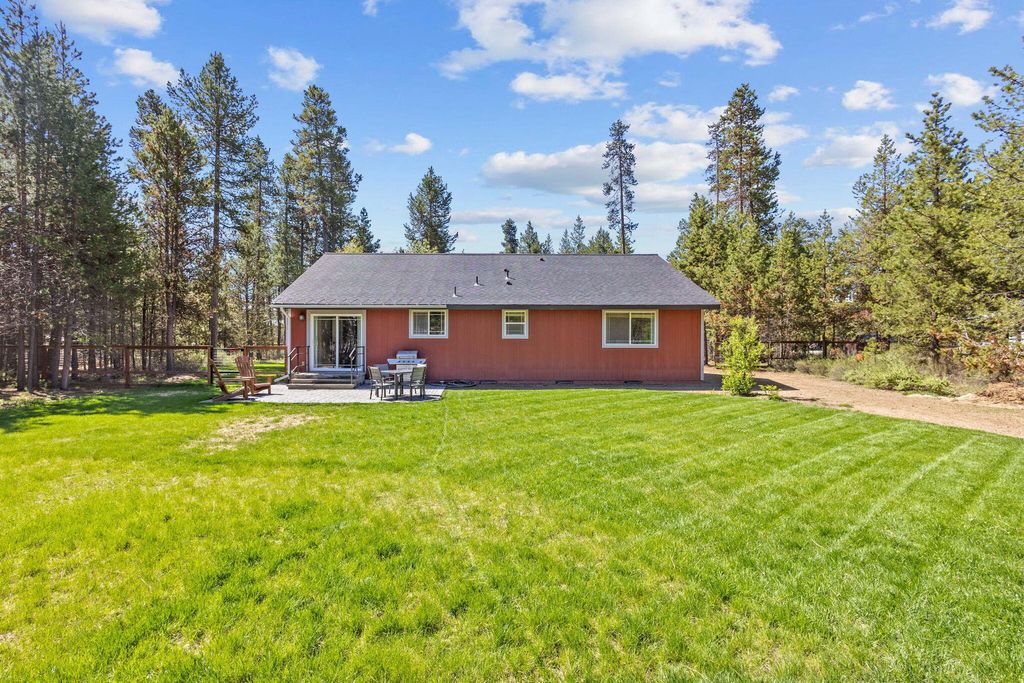 Move-in ready home on 1+ acre just 25 miles from Bend. Wake up to quiet mornings and fresh Central Oregon air while enjoying convenient access to town, recreation, & everyday amenities. Turnkey single-level home features an open concept layout, vaulted ceilings, luxury vinyl plank flooring, & a neutral interior color pallet that is both comfortable and inviting. Step outside to your own private retreat, complete with mature trees, automatic sprinklers, and plenty of room for animals, RV parking, or a future shop! Fully fenced and cross fenced including 4 custom metal gates with an automatic entry gate - creating a welcoming sense of privacy & security. Spend evenings under big Central Oregon skies, weekends exploring nearby lakes, hiking trails, & public lands -enjoy the freedom that comes with space, privacy & no HOA. This is more than a home- it's a Central Oregon lifestyle opportunity!