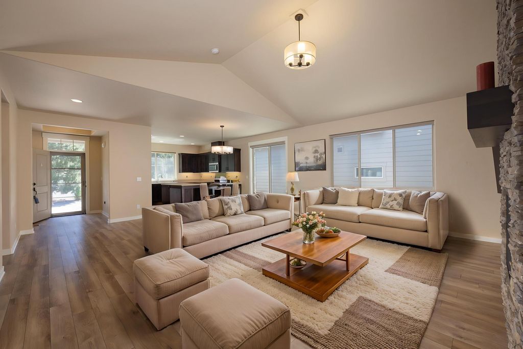 Welcome home to effortless single-level living in the heart of Crescent Creek. This beautifully maintained 3-bedroom, 2-bath residence offers 1,773 sq ft of light-filled comfort with a spacious vaulted great room, durable laminate floors, and a dramatic floor-to-ceiling stone gas fireplace that anchors the space with warmth and style. The open kitchen is designed for gathering, featuring abundant cabinetry, stainless steel appliances, and sleek quartz countertops--perfect for entertaining or everyday living. Brand-new carpet in all bedrooms adds a fresh, cozy finish. Step outside to easy-care landscaping and enjoy the rare bonus of public lands directly across the street--ideal for dog walks, morning strolls, or soaking in the quiet. Crescent Creek residents enjoy a clubhouse, park, walking paths, and trail access to downtown La Pine. Surrounded by lakes, rivers, and endless outdoor recreation, this is Central Oregon living at its best. Homes like this don't last!