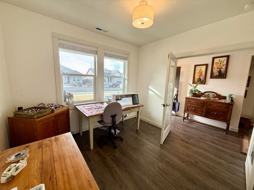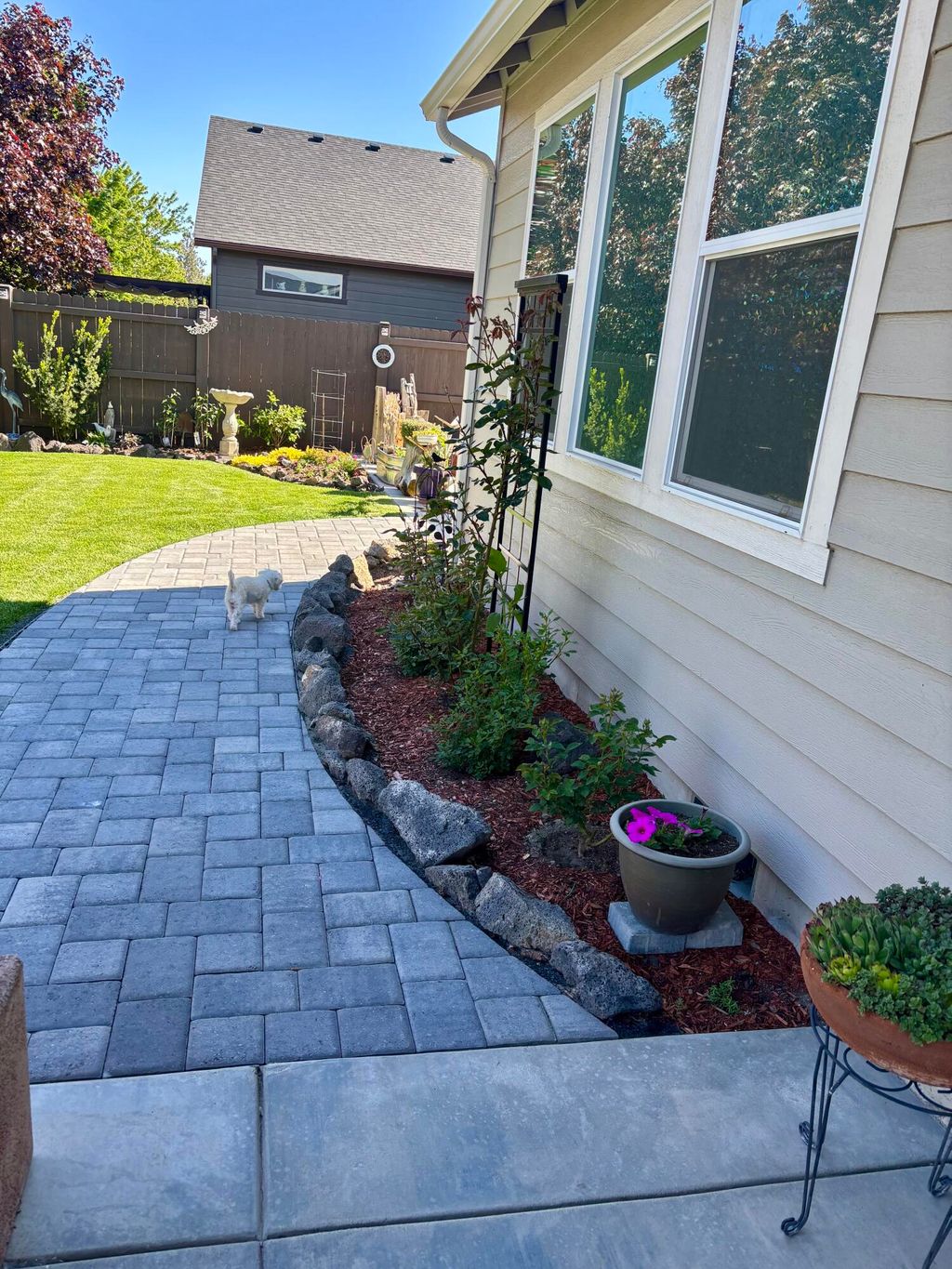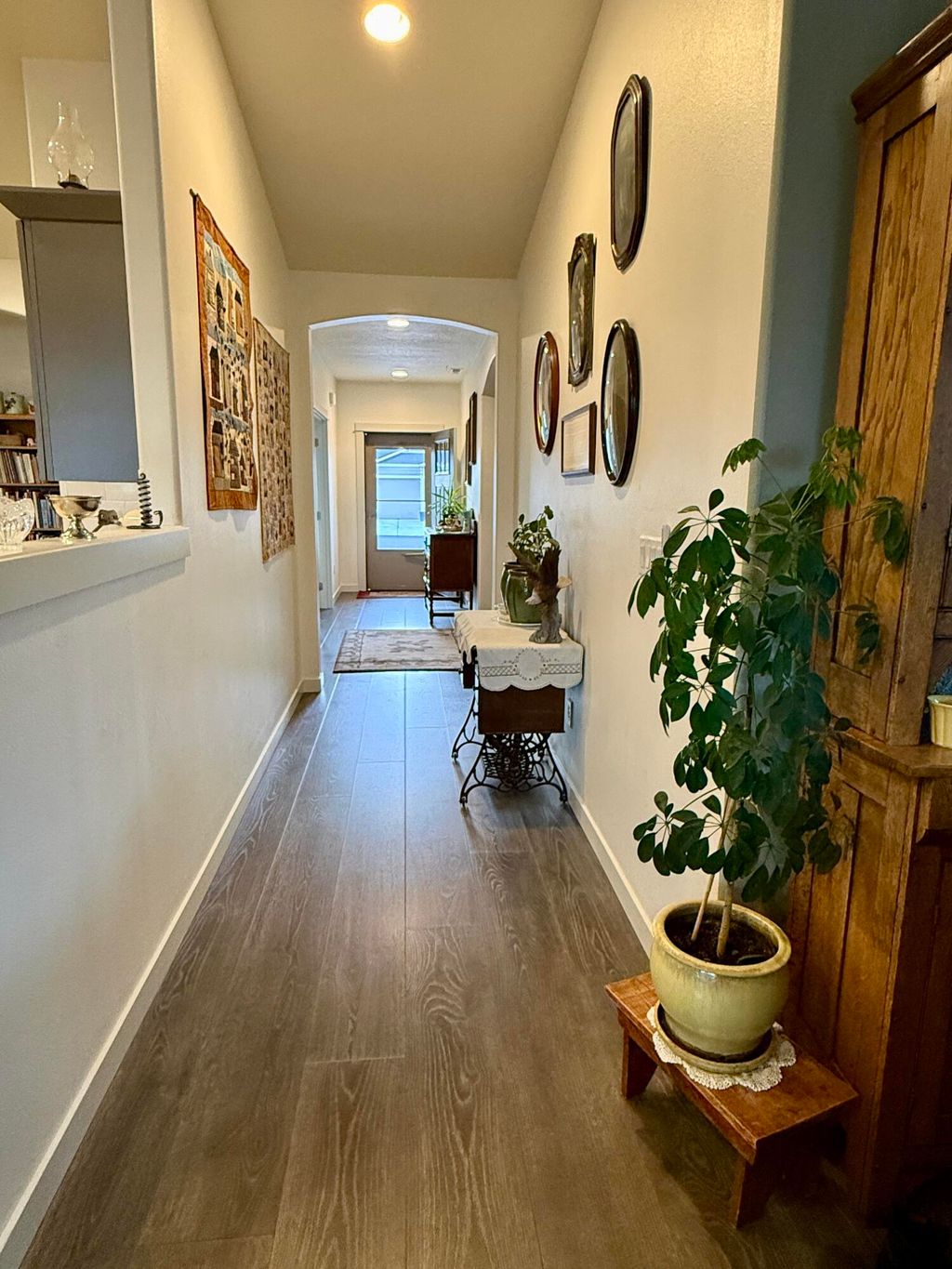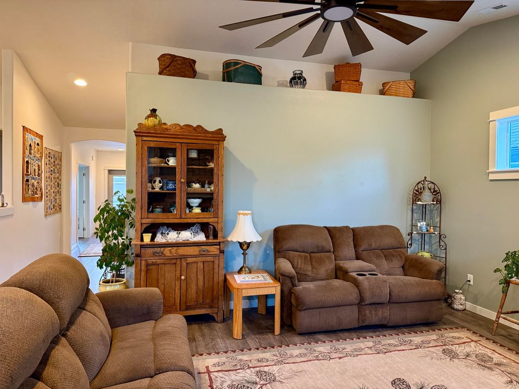 Retreat to the primary suite, which offers an ensuite bathroom with a step-in shower, soaking tub, dual-sink vanity, and a generous walk-in closet. Enjoy seamless indoor-outdoor living with direct access to the covered concrete patio from both the primary bedroom and the living room. The well maintained yard bursts with color in the spring and summer, while a charming stone pathway leads you to a second patio with a pergola--ideal for outdoor gatherings. Additional highlights include a three-car garage, RV parking and hookups for a hot tub.Residents also enjoy access to a 4-acre park and close proximity to the scenic Dry Canyon.