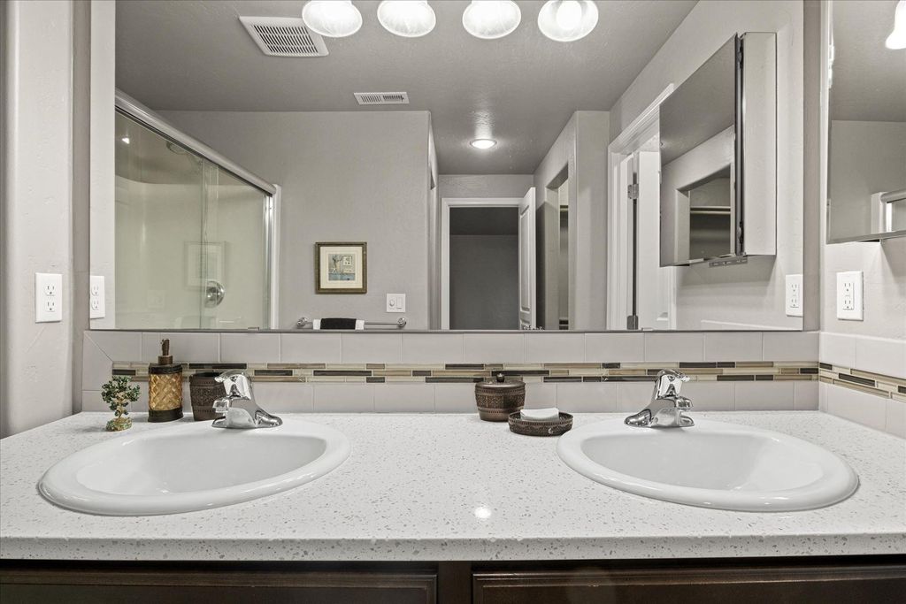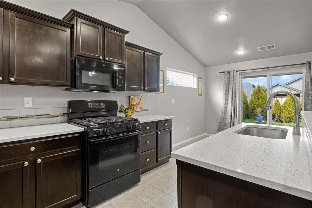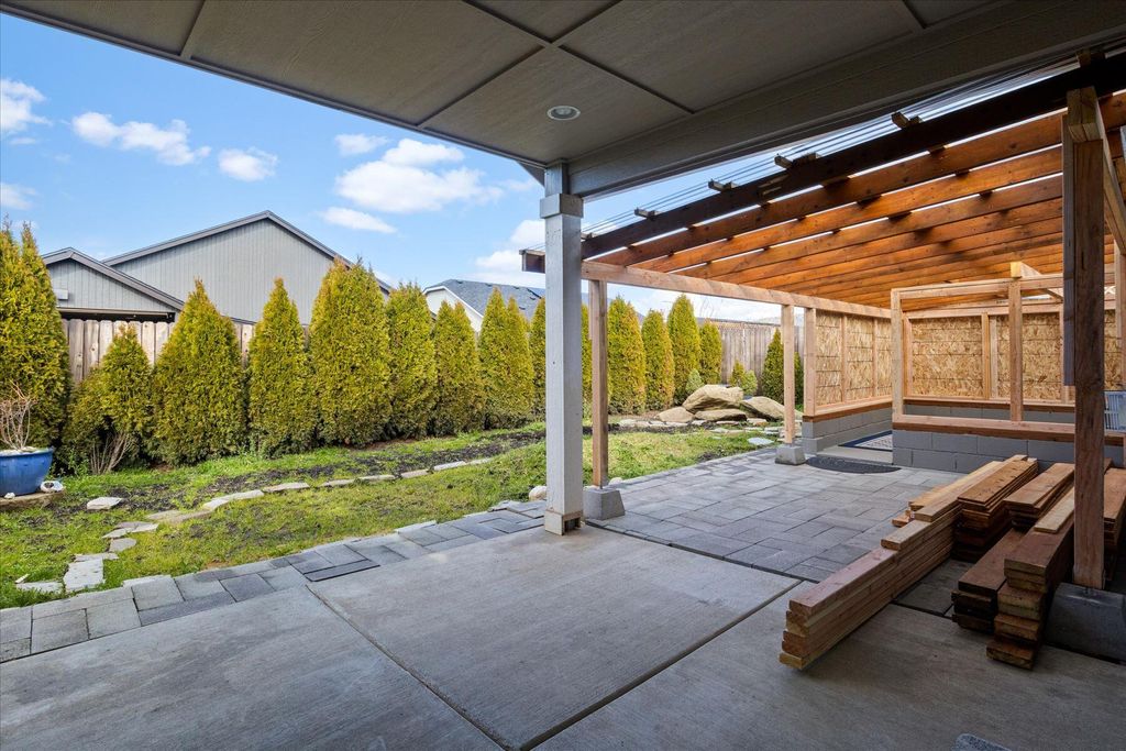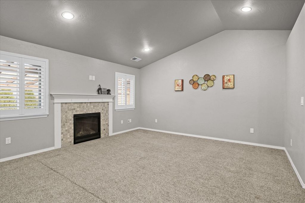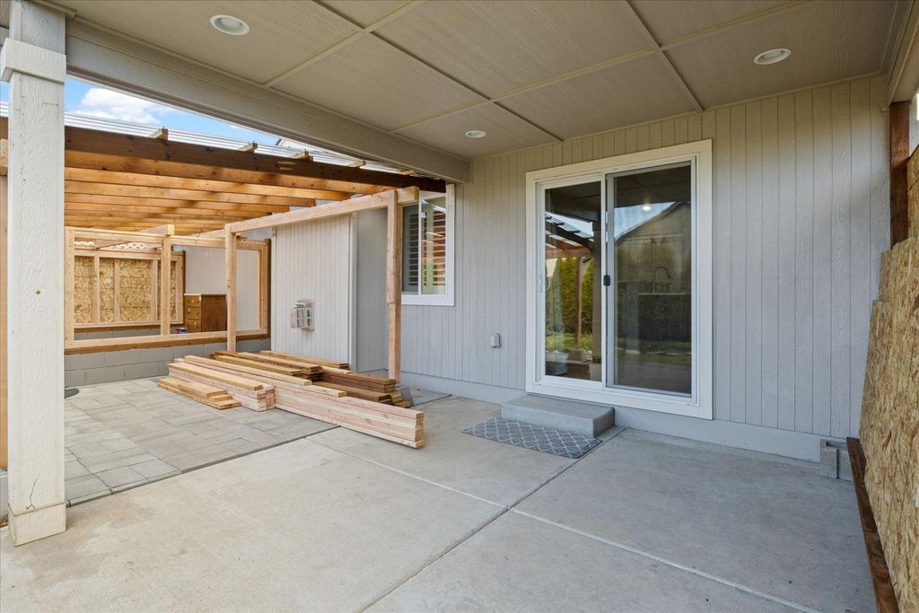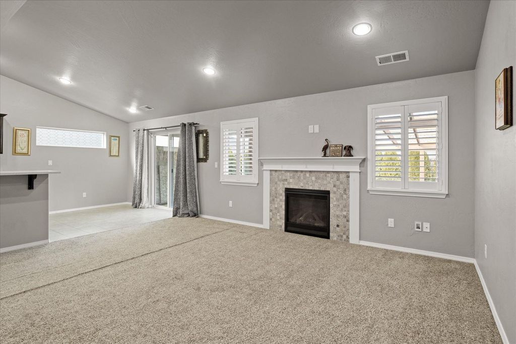 Step inside this beautifully maintained single-level Edgewood plan, offering upgraded comfort and thoughtful design. Near the heart of Medford within esteemed school district, this 3bd/2ba features an open-concept living space with vaulted ceilings and abundant natural light. Stylish kitchen boasts rich espresso cabinetry, designer-styled quartz countertops, full tile backsplash, an upgraded gas range, and a breakfast bar overlooking the dining and great rooms. Enjoy cozy evenings by the tiled gas fireplace or step through sliding doors to the covered patio and low-maintenance yard for outdoor living - with a BONUS enclosed outdoor room! The spacious primary suite offers dual walk-in closets and a double vanity bath. Exceptional highlights include solid wood plantation shutters throughout, neutral tones, tile in wet areas, laundry room and an oversized sheet-rocked garage. Move-in ready gem close to schools, shopping, and parks - the perfect blend of efficiency, elegance and location!