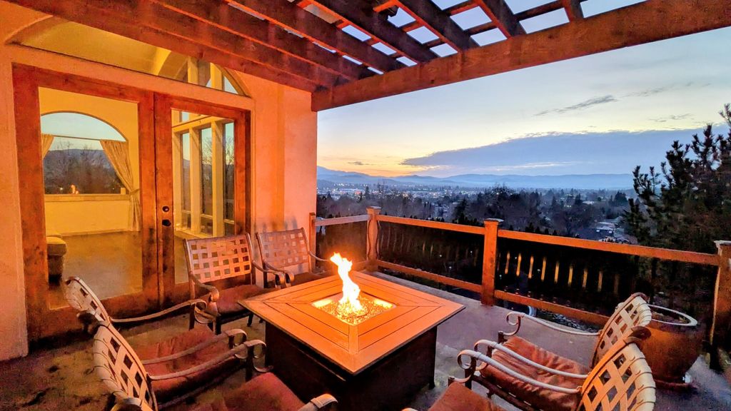 Unbelievable Custom Tuscan-Style Home With Breathtaking Views Overlooking The Valley. Built by the Builder for himself in an Attractive NE Grants Pass Neighborhood. Stunning Finish Quality & Detail Throughout. Exceptional Granite, Tile, Wood, Crown Molding & Other Natural Finishes are Standard. Open Great-Room Concept Main Living Area Emphasized by High Vaulted Ceilings & Architectural Arches. Expansive Chef's Kitchen with Island, Sub-Zero Style Fridge/Freezer & Walk-In Pantry. Gorgeous Dining Room & Family Room. Exquisite Master Suite with Tile Finishes & Full Travertine Shower, Plus Two Guest Bedrooms & Baths. Two-Family Living can be enjoyed here With a Lower-Level Living Space Highlighted by Stylish Stamped Concrete Floors, Full 2nd Kitchen, Spacious Living Space, Impressive Full Bath, Private Entrance & Garage. Other Amenities include Main-Level Balcony with View & Fire Pit. Expansive Patio Space, Hot Tub, RV Parking, Large Yard, & Privacy From Neighbors. MUST See To Appreciate!