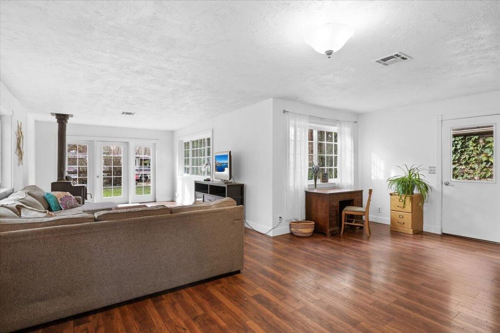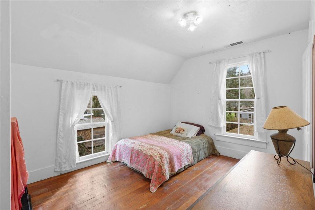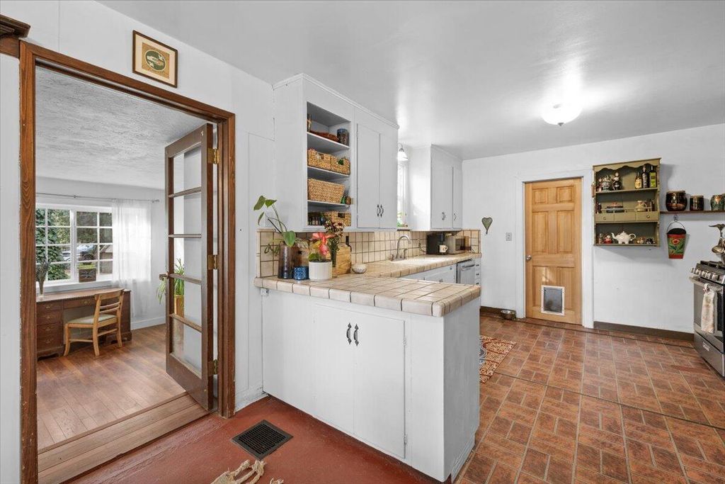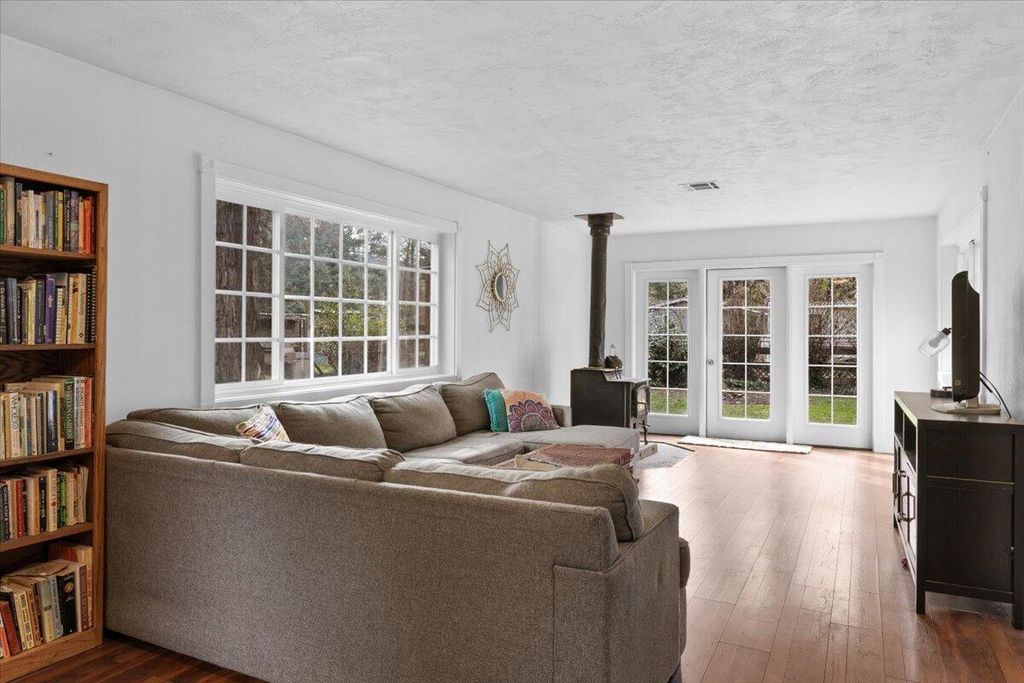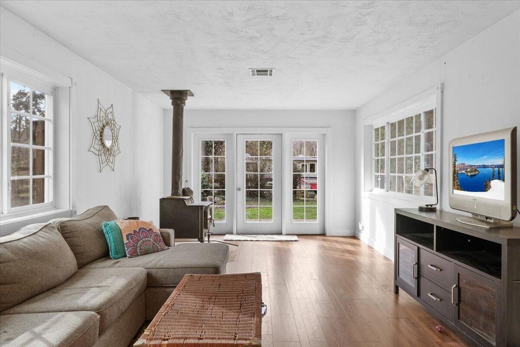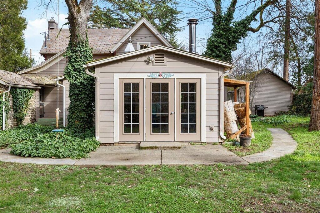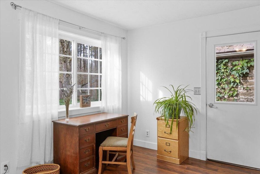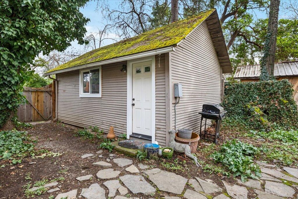 peaceful views of the surrounding trees and gardens, filling the space w/natural light. The living room includes a gas fireplace and vinyl dual-pane windows The property also includes a detached 280 sqft studio w/ loft, shop w/ power, RV parking w/ electricity, shed, garden w/planter boxes, chicken coop, &mature landscaping for privacy. Many thoughtful updates have been made over the years. A versatile property with character, privacy, and potential in the heart of Southern Oregon Wine Country.