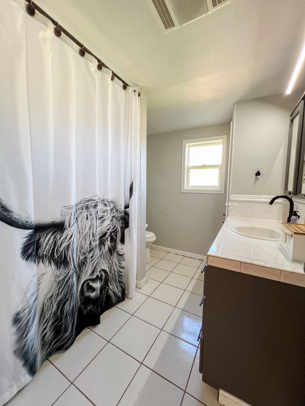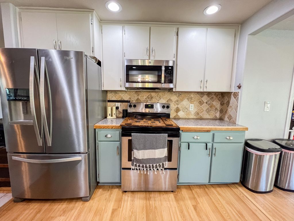The kitchen includes granite countertops and stainless steel appliances, included in the sale. A spacious utility room offers a tankless propane water heater & built-in shelving for pantry storage.