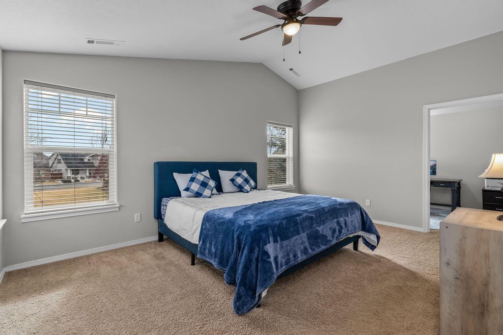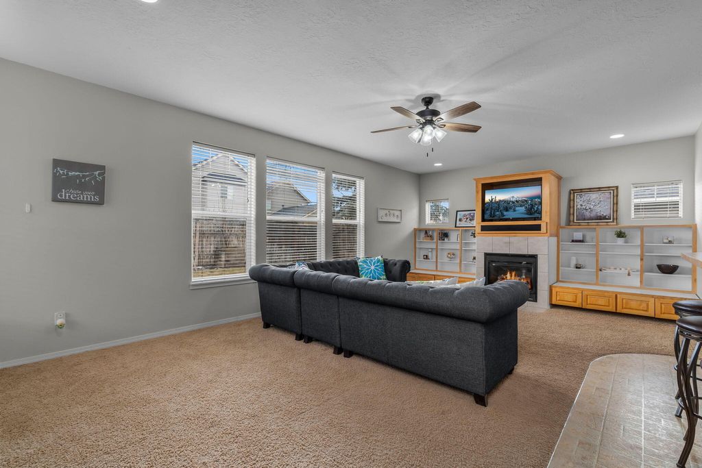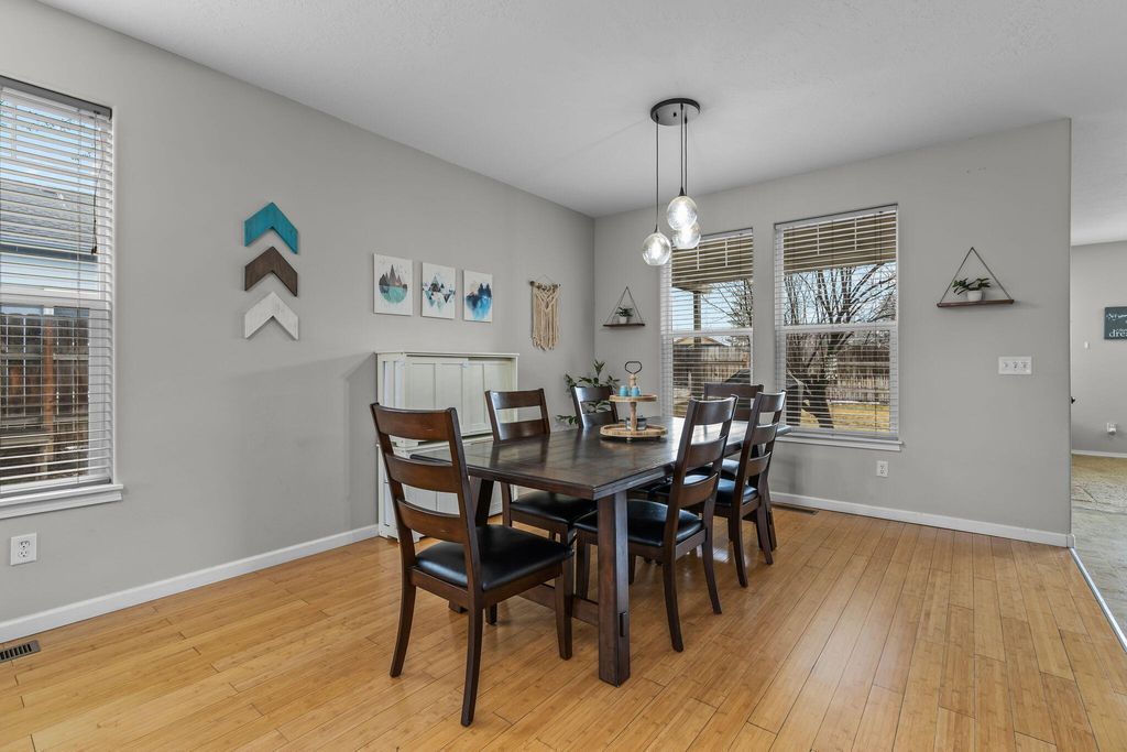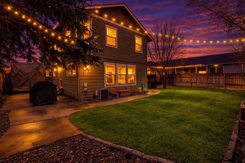 Beautiful 4 bed 2.5 baths home offering 2512 sq ft on a .16 acre lot w/ 27 ft RV parking & A/C. The entry welcomes you w/ bamboo floors & a charming reading nook under the stairs. The open floor plan provides comfortable living w/ a spacious great room featuring a cozy gas fireplace & built-in shelving. The kitchen includes a breakfast bar pantry & easy flow to the dining area perfect for everyday living & entertaining. Half bath & mudroom located just off the kitchen leading to the oversized 2 car garage. The primary suite is generously sized w/ an attached office/nursery large walk-in closet & private bath W/ soaking tub & double vanity. The 3 additional bedrooms feature vaulted ceilings for an open airy feel & upstairs laundry adds convenience. Fully fenced backyard includes hot tub raised flower beds mature trees & a peaceful sitting area ideal for relaxing outdoors. Call today to schedule a showing!