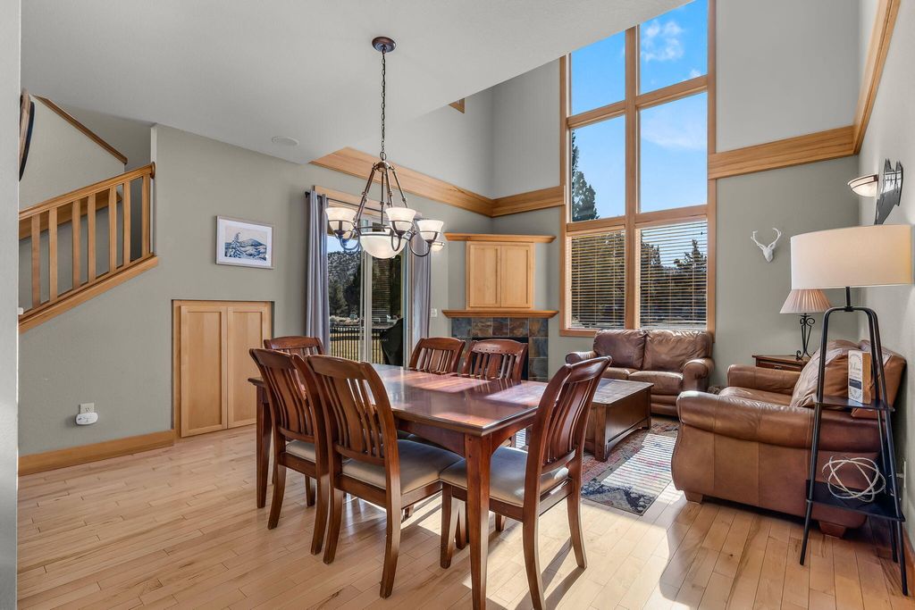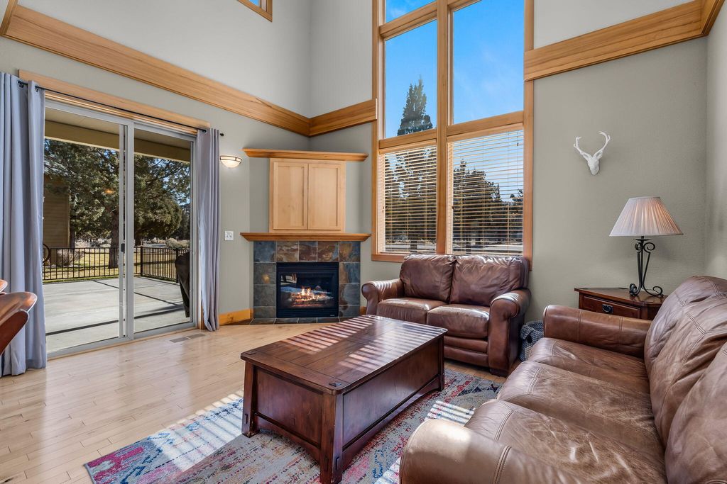 Located in the desirable Desert Sky neighborhood of Eagle Crest! This 2 bed 2.5 bath 1600 sqft home is being sold fully furnished w/all items included for true turn-key living. Tile entry opens to soaring ceilings w/ abundant natural light in the living room featuring hardwood floors built-ins & cozy gas fireplace. Kitchen offers granite countertops ample storage & is fully stocked w/ dishes & glasses. Primary suite is conveniently located downstairs along w/1/2 bath & laundry closet w/extra storage. Upstairs features a spacious loft w/Cascade Mt Views & access to a half Jack & Jill style bath w/double vanity enclosed toilet & shower stall. This creates potential for a 2nd primary suite. Covered back patio is perfect for grilling & includes BBQ & patio furniture. Fenced courtyard w/ black metal fencing & gate to common area plus detached single-car garage. HOA covers landscaping snow removal exterior paint & asphalt driveway/walkway overlay & seal. Call Today!