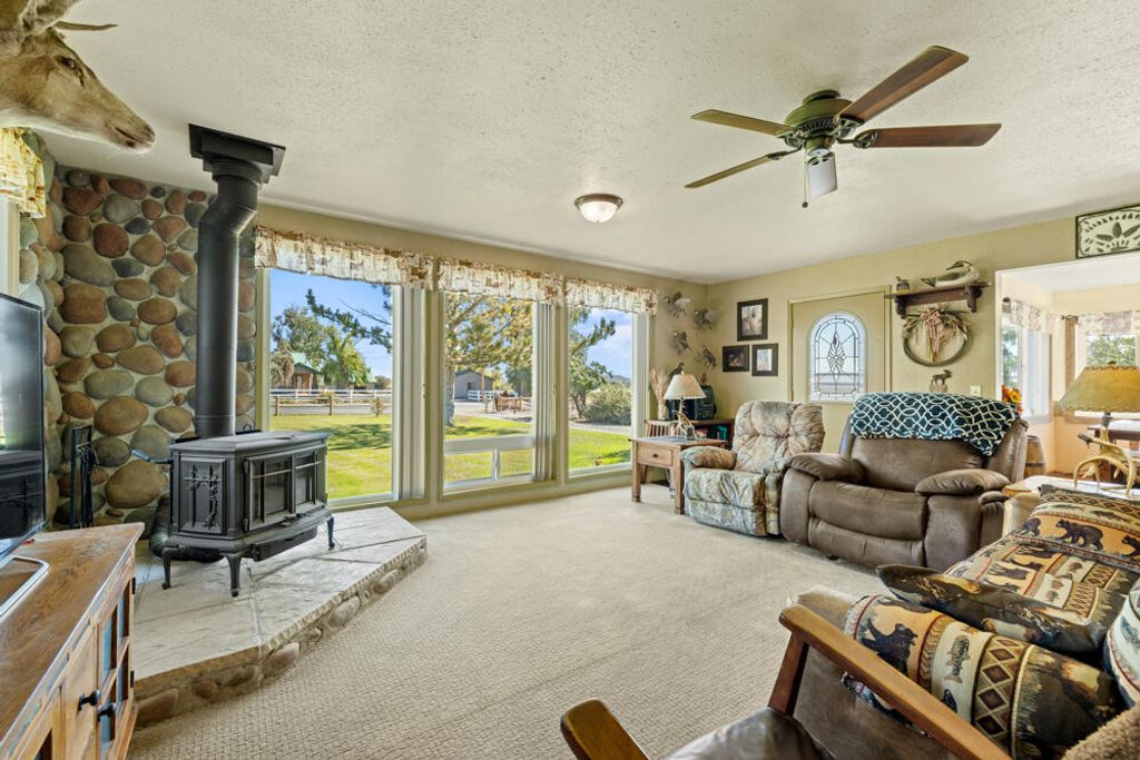 Ranch on the river. KID A water, pump & wheel line plus Riparian Right. This 23.74-acre property shows pride of ownership. 1466 sq ft home with 3-bedroom 2-bathroom with possible 4th bedroom comes with multiple Shops, Stalls, Barns and rich irrigated pasture. The current seller has updated electric on the property, the domestic well, roofs on home & shop along with home updates. Flooring, Windows, Appliances, including certified wood burning stove. New large Bay Vinyl windows. Located just north of Merrill 15 minutes south of Klamath Falls.