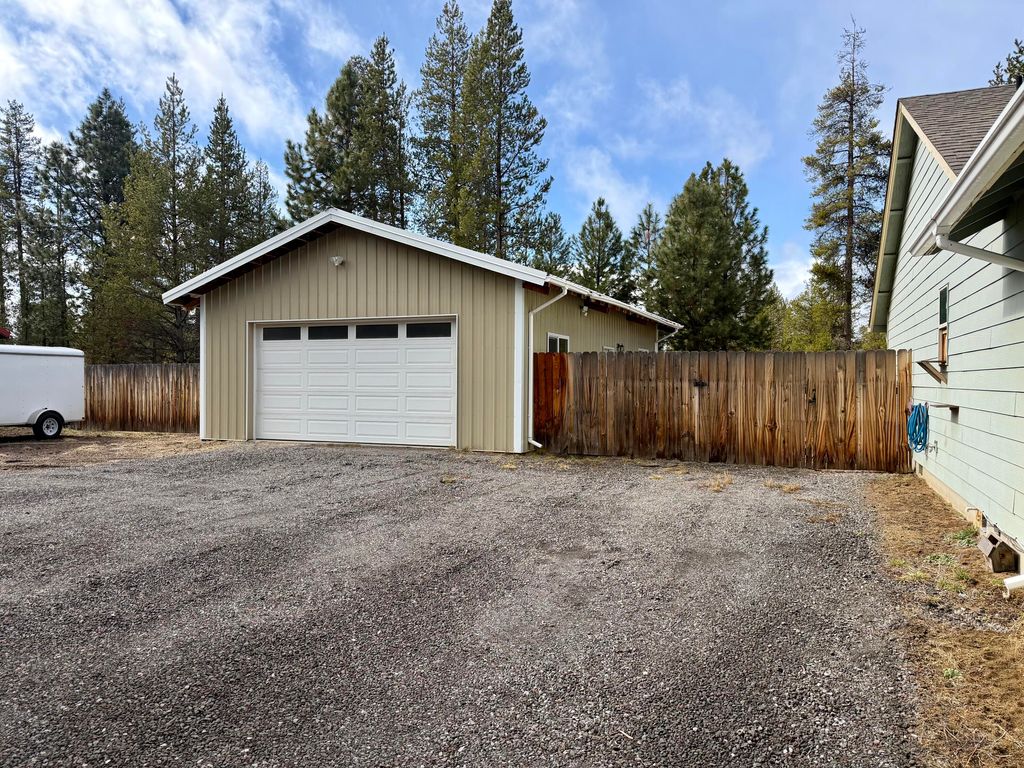 Nice 3-bedroom, 2-bath stick-built home on a well maintained .95-acre lot. Built in 2014, this 1,560 sq ft residence features an open floor plan and a spacious, accessible kitchen with a breakfast bar. The primary suite offers a full bath with a shower/tub combo and a walk-in closet, thoughtfully separated from the two guest rooms. Enjoy outdoor grilling and gatherings on the covered back porch. Additional amenities include an attached 2-car garage, a 24x36 insulated shop, and a fenced backyard with an access gate to BLM land, providing unlimited opportunities for adventure.
