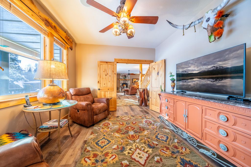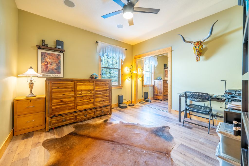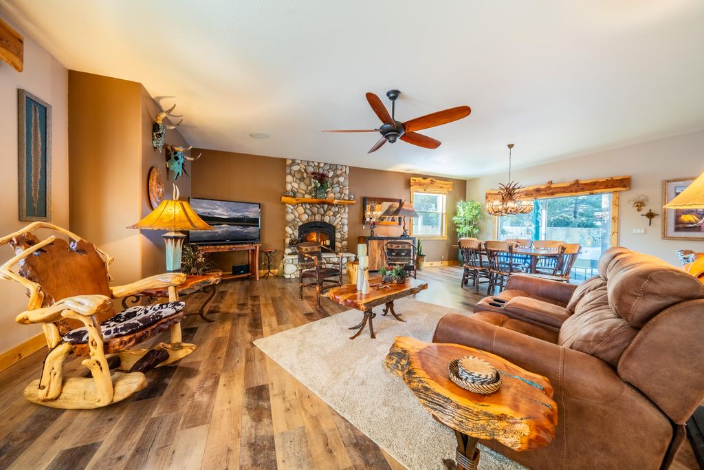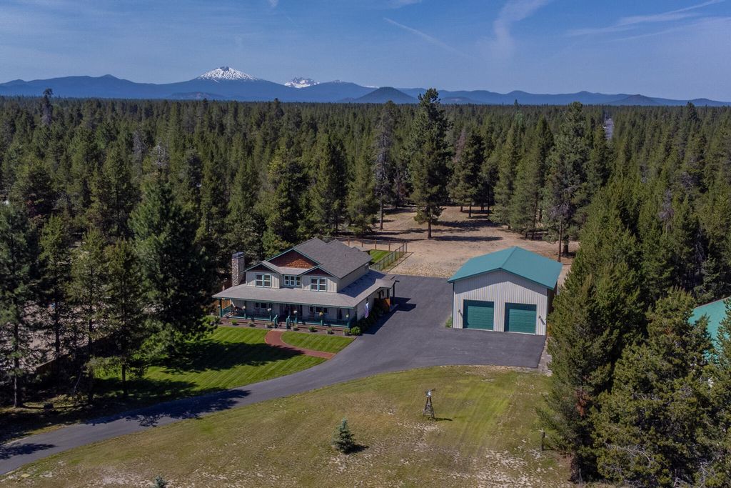 This tranquil La Pine farmhouse offers modern comfort and rustic charm, set on a spacious, manicured lot surrounded by towering pines. The beautifully designed two-story home features an inviting open-concept layout, a cozy wood-burning fireplace, and a covered patio with a beautiful fenced backyard. A large detached shop provides ample storage or workspace, while the private, fenced-in yard ensures peace and privacy. Lovingly updated, this home features a new oversized asphalt driveway and parking area, new paint inside and out, beautiful new wide plank engineered hardwood flooring, and stunning knotty pine trim. With easy access to the outdoors, it is a rare find that checks all the boxes- come and discover this quintessential Central Oregon home for yourself!