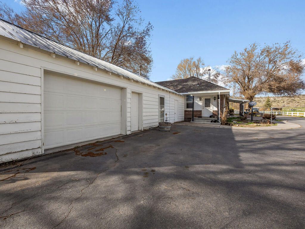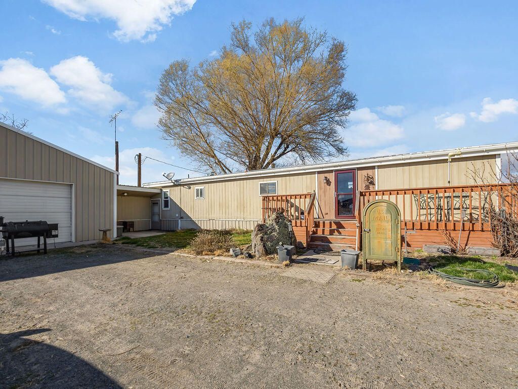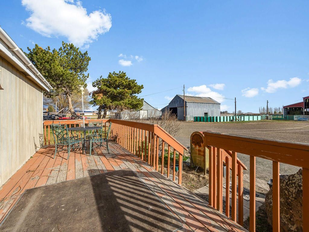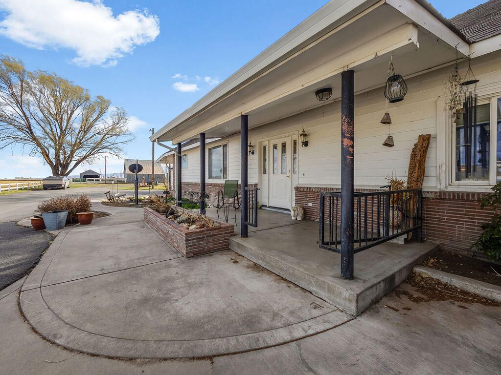 Enjoy country living with room for your hobbies, horses, and livestock on this rare 24.79-acre ranch just outside Merrill. The property includes 23.7 acres of A KID irrigation rights and offers plenty of space for animals, equipment, and agricultural use. Outbuildings include a 500-ton capacity hay barn with finished railing that could also serve as a horse arena, corrals with paneling, and three additional outbuildings ideal for workshops, equipment storage, or other uses. The original ranch-style home features four bedrooms and two full baths, including a spacious primary suite and a wood-burning fireplace. The home was originally built around 1903 and completed in 1947, offering character and charm. A beautiful covered deck provides a great space to relax and enjoy the surrounding views. A detached one-car garage provides additional storage and includes a bonus room.The property also includes an ADU manufactured home with three bedrooms, two bathrooms, and an oversized two-car garag