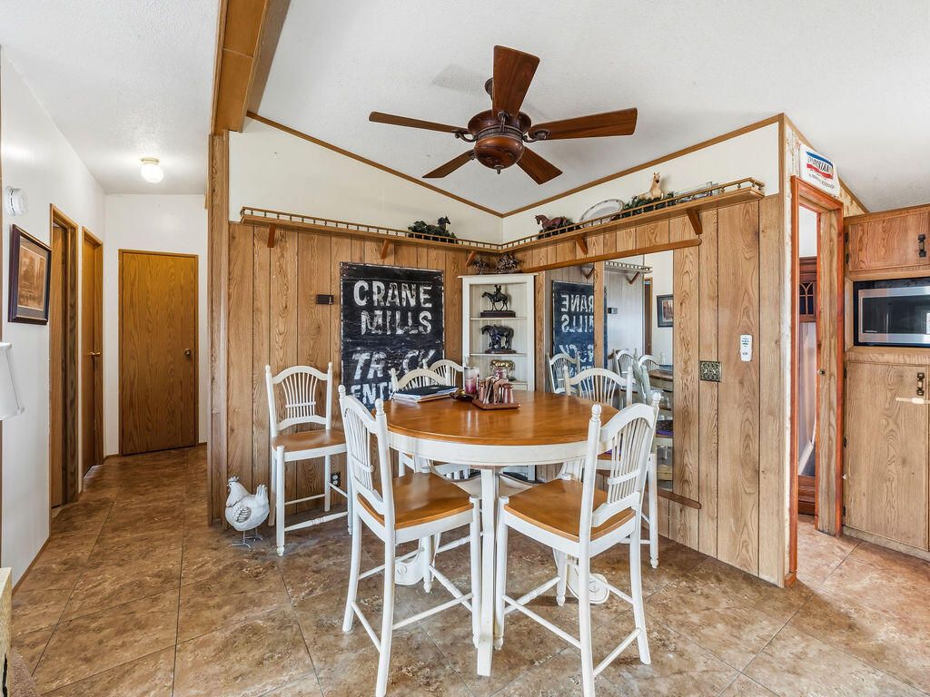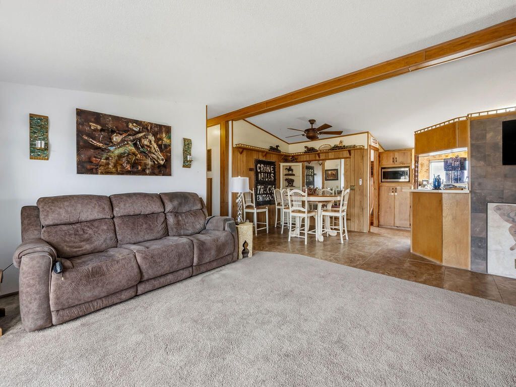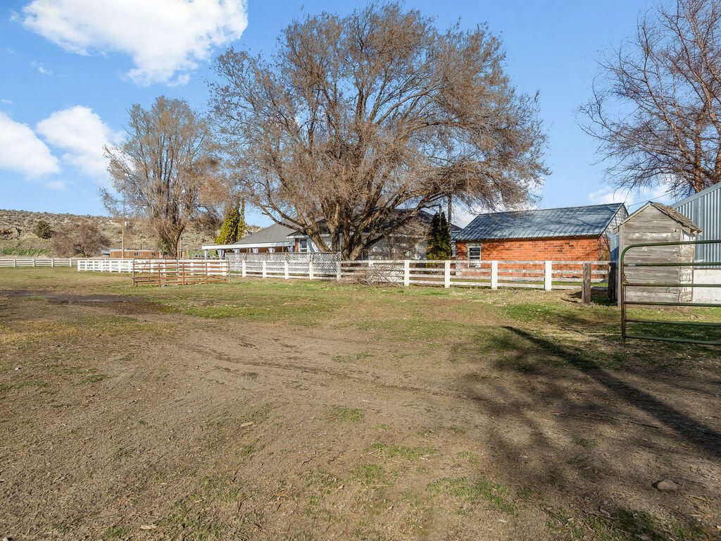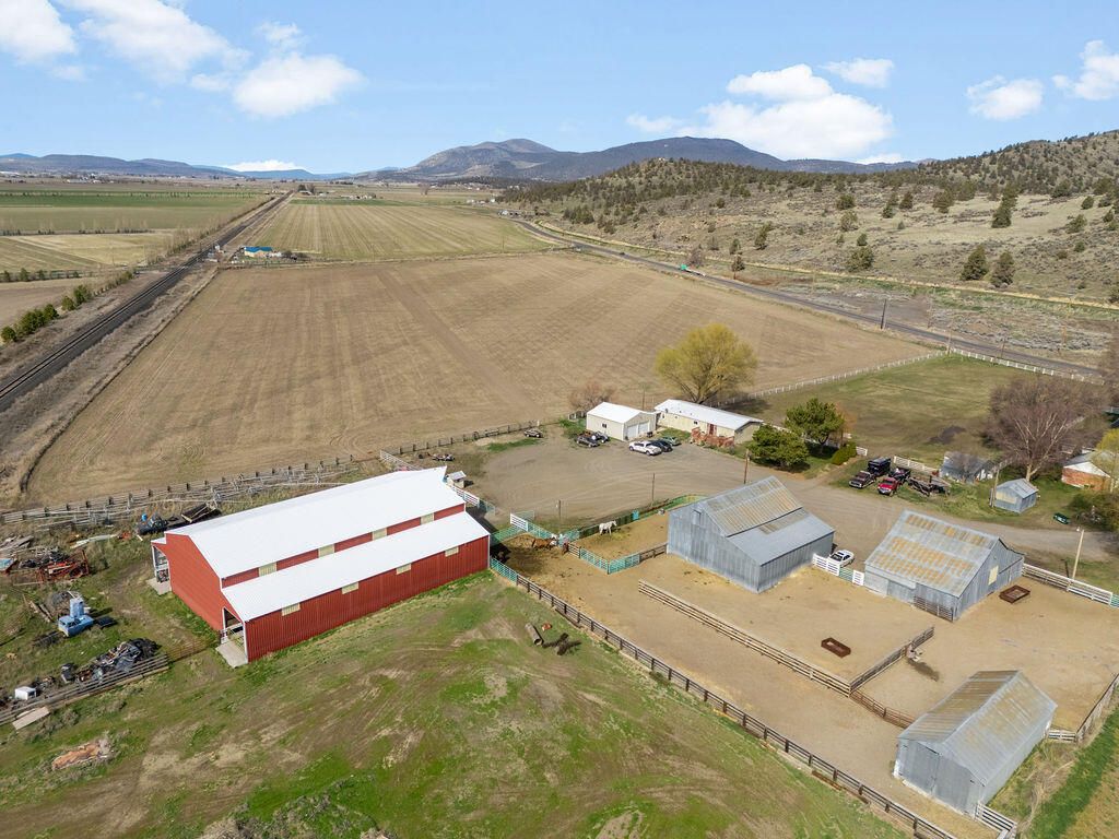 Enjoy country living with room for your hobbies, horses, and livestock on this rare 24.79-acre ranch just outside Merrill. The property includes 23.7 acres of A KID irrigation rights and offers plenty of space for animals, equipment, and agricultural use. Outbuildings include a 500-ton capacity hay barn with finished railing that could also serve as a horse arena, corrals with paneling, and three additional outbuildings ideal for workshops, equipment storage, or other uses. The original ranch-style home features four bedrooms and two full baths, including a spacious primary suite and a wood-burning fireplace. The home was originally built around 1903 and completed in 1947, offering character and charm. A beautiful covered deck provides a great space to relax and enjoy the surrounding views. A detached one-car garage provides additional storage and includes a bonus room.The property also includes an ADU manufactured home with three bedrooms, two bathrooms, and an oversized two-car garag