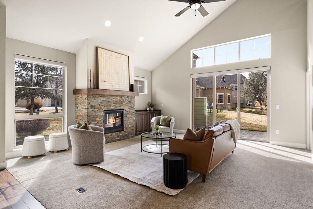 Discover comfort, privacy and resort living in this impeccably maintained home. Situated on a desirable corner lot backing to peaceful natural space, this home offers quality craftsmanship, premium finishes and versatility as a primary residence, second home or vacation rental retreat. Inside, enjoy a light-filled open floorplan with soaring ceilings, engineered hardwood floors, and a stone fireplace. The kitchen is a chef's dream with quartz counters, knotty alder cabinets, and upgraded appliances. The desirable layout features a main-level primary suite, with two bedrooms and a full bath upstairs. A versatile loft provides space for a home office or guests. Enjoy the world-class amenities of Eagle Crest: three 18-hole golf courses, day spa, two sport centers with indoor and outdoor pools, miles of scenic trails, and Deschutes River access for hiking & fishing. In winter, enjoy skiing at Mt. Bachelor. HOA covers all landscaping and exterior paint. One seller is a licensed agent in CO