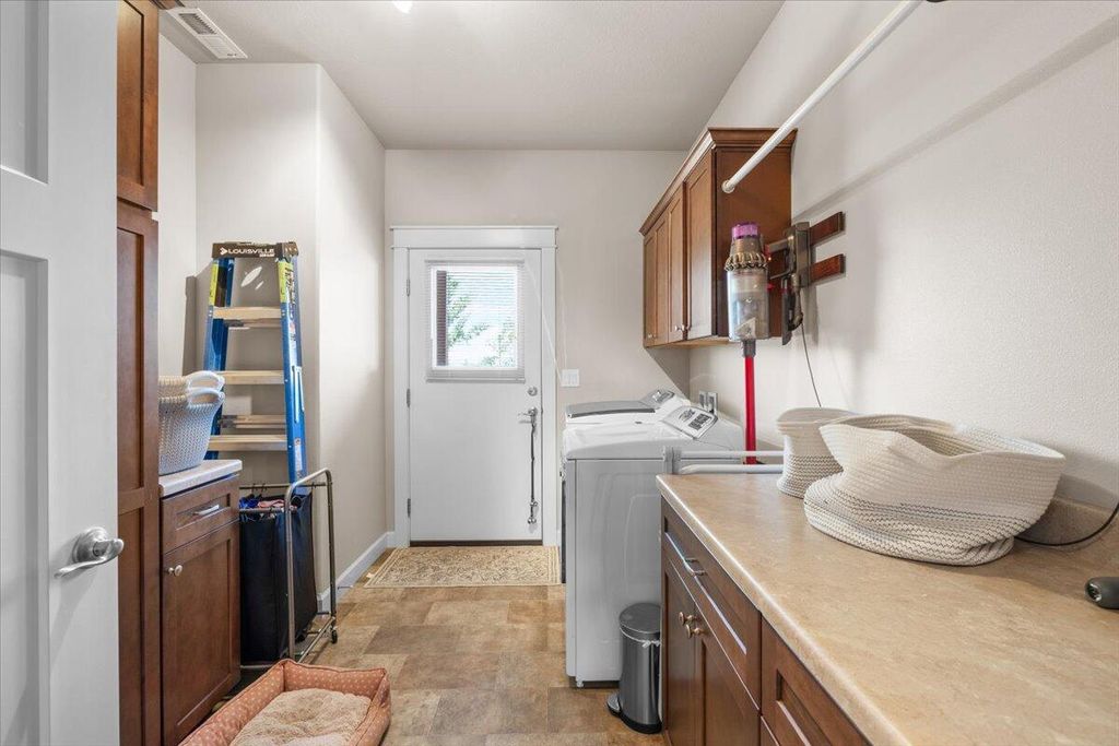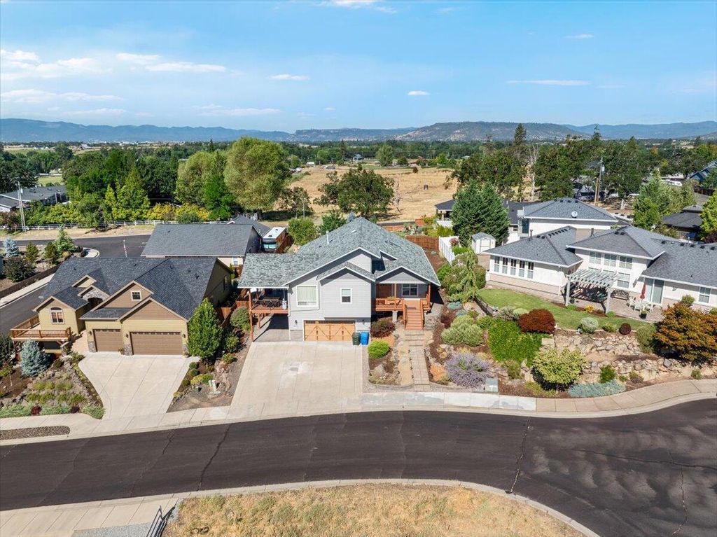 Enjoy beautiful Rogue Valley views from this thoughtfully designed custom home in the heart of Eagle Point! The open-concept kitchen features soft-close cabinetry, granite countertops, tile backsplash, and a spacious walk-in pantry. The home offers dual primary suites with coffered ceilings, solid-core doors, and custom tiled showers. Downstairs includes an additional 613 sq ft of finished space with a half bath, utility sink, and plumbing for a future shower--ideal for a bonus room or potential multi-generational living. The oversized 2-car garage includes a high-lift opener and 220V power. Relax on the covered deck with a built-in gas hookup for your BBQ while taking in the valley views. The low-maintenance backyard offers easy-care landscaping and space for RV parking. Don't miss out this Eagle Point gem!