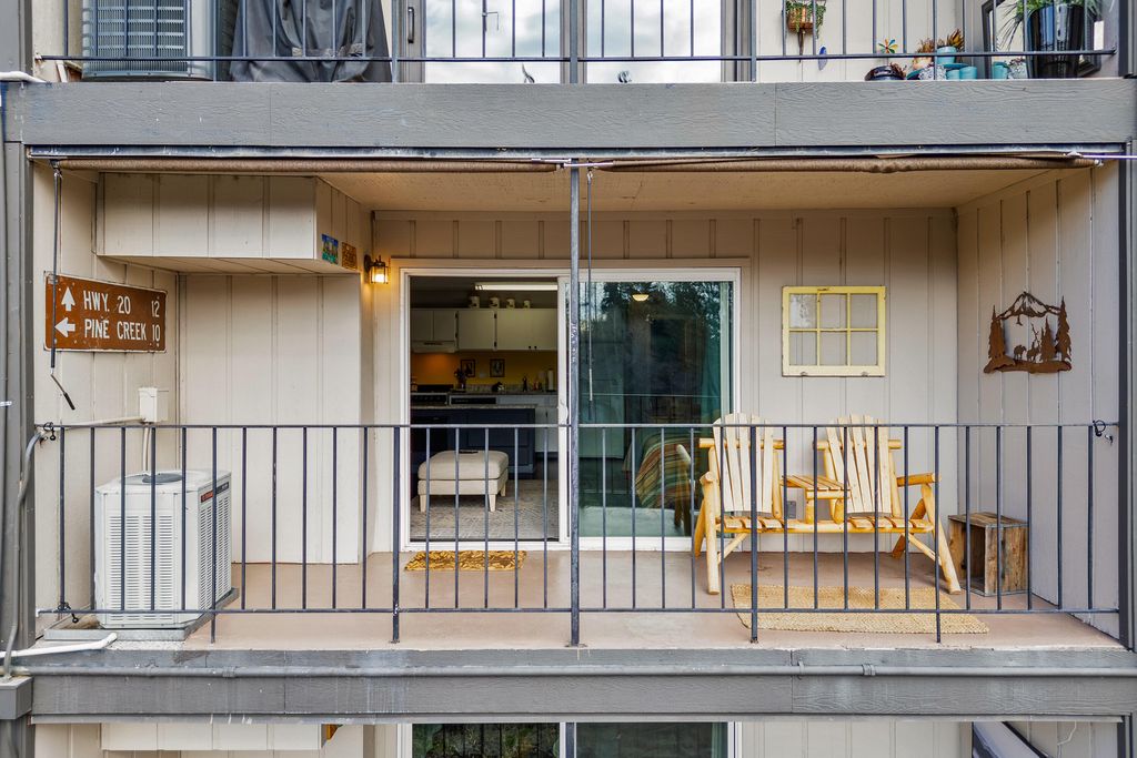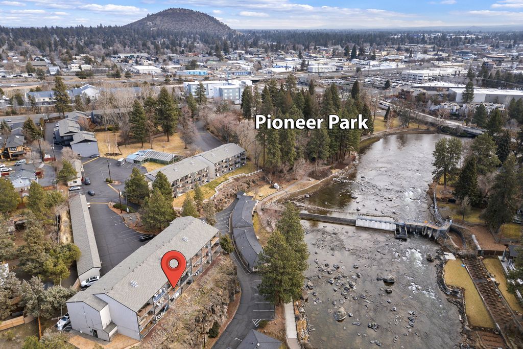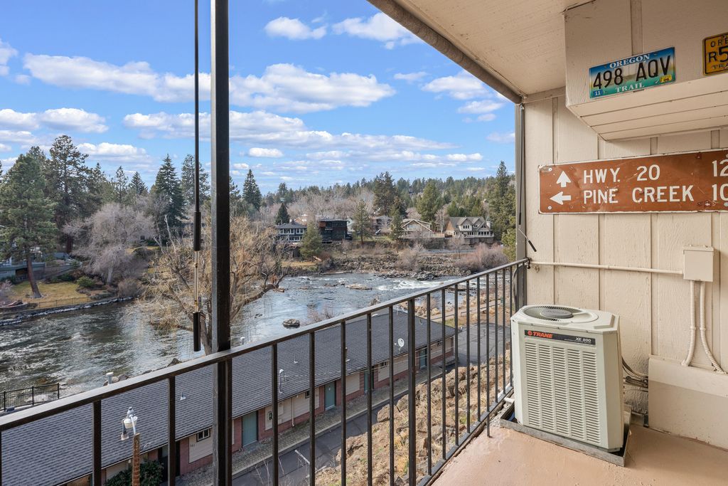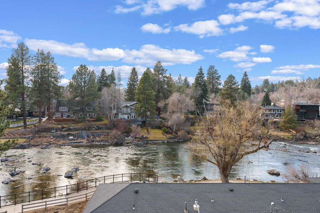 Wake up to sweeping views of the Deschutes River in the heart of downtown Bend. This turn-key second-floor condo offers approved short-term rental capability and a lock-and-leave lifestyle, with convenient access to Bend's renowned dining, shopping, trails, and year-round events. The bright kitchen and living area are positioned to capture the river views and include a Murphy bed for accommodating additional guests. The primary suite features an attached bathroom with a tiled shower for added privacy and comfort. Ideal as a primary residence, second home, or income-producing vacation rental, this low-maintenance property offers effortless ownership. HOA dues include utilities, cable, and exterior maintenance.