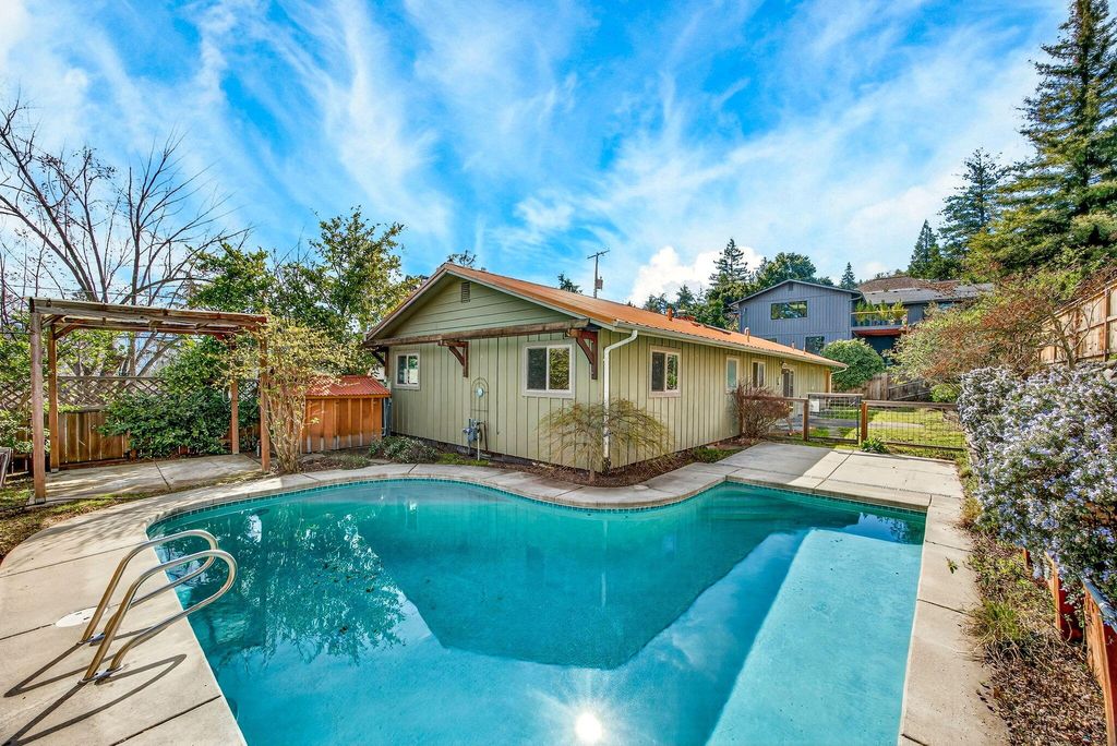 Charming modern home with an open and inviting layout. The kitchen flows seamlessly into the living room, creating a comfortable gathering space centered around a cozy wood burning fireplace. Three bedrooms and one bathroom are located on one side of the home, offering a functional and private layout. The converted garage provides additional living space with a heated office space plus still enough room for plenty of storage. You won't want to miss the second bathroom complete with a newer stunning tiled shower. A wood sliding glass door from the living room provides easy access to the low-maintenance private backyard. The most charming in-ground heated solar pool with gazebo and concrete slab is perfect for relaxing or outdoor gatherings. Conveniently located near downtown Ashland and offering beautiful views of the valley. Situated on a large corner lot. Welcome Home!