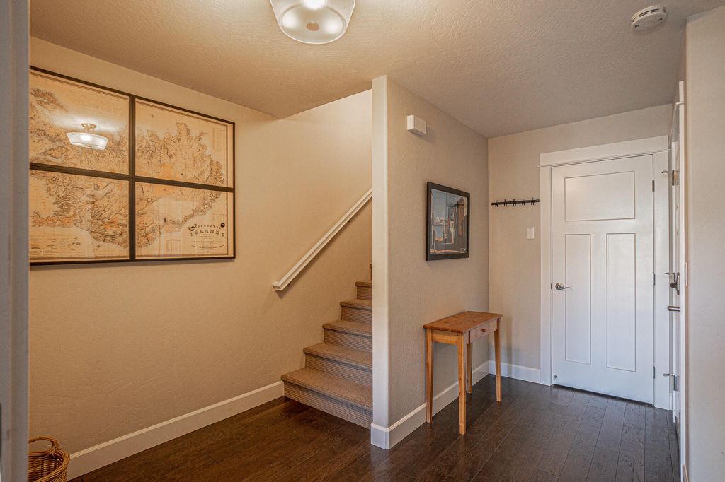 This lovely town home has been thoughtfully designed. The split-level floorplan offers a primary bedroom with en-suite and built in Murphy bed on the main level complete with a private patio that feels like a secret garden and separate entrance. Upstairs you will find two additional bedrooms, a beautiful 2nd bath with tiled shower and double vanity. High-end finishes throughout including granite countertops, and Energy Star stainless appliances in the kitchen, vaulted ceilings, gas fireplace, ceiling fans. Be sure not to miss the large covered patio upstairs with incredible views of Mt. Ashland and the Siskiyous. Located in a master planned community with parks and trails you also have a variety of businesses at your fingertips including restaurants, coffee shop, chiropractor and so much more! 5 minute drive to downtown. Oversized finished 2 car garage with EV charger, ample storage and off-street parking accessed in the alley behind. And low HOA dues! What a sweet place to call home!