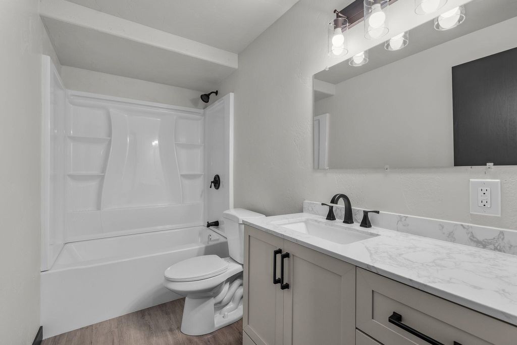 Extensively updated 4 bedroom 2 bathroom home!! This home is 1458 sqft and features new paint, new flooring, new bathroom vanities, toilets, and tub and shower, new water heater, a new roof, new kitchen cabinets with granite counter tops, new stainless appliances, and a heat pump was also added to this amazing home! This split floor plan has a good sized primary bedroom on one side with a large walk in closet and access to the rear patio. An attached double car garage provides space for your vehicles or toys!