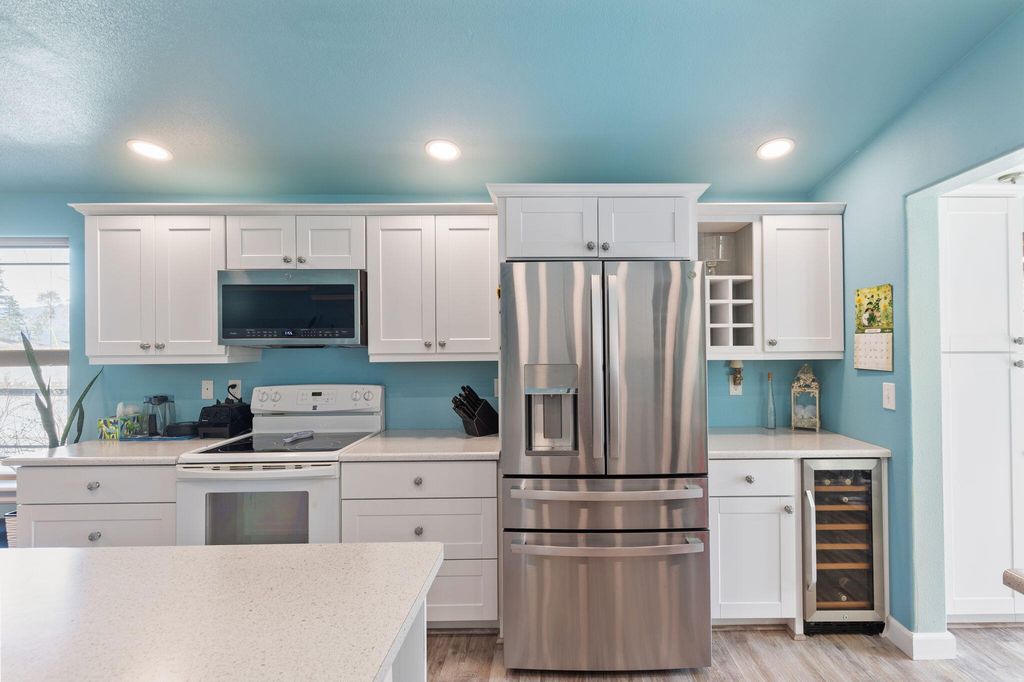 Immaculately maintained! Ramp access leads to this light, airy 1,601sqft -3bdrm, 2bth home. A Ravelli pellet stove enhances your cozy option in the living room. Recent interior updates include new cabinetry, lighting, & LVP flooring. The kitchen is designed for both cooking & easy entertaining! A spacious island w/prep sink, no-touch faucet, pantry, French door refrigerator, ultra-quiet dishwasher, wine fridge, microwave, range/oven & walk in pantry! Pass through to dining area w/a built-in buffet. Sliding glass door leads to fenced back yard, expansive Timber decking, swim spa w/Covana automatic lid, raised garden beds, 2 greenhouses, established berries/veggies! Garage has been converted to addit' living space w/built-in desk & cabinets, providing extensive storage, cupboards, shelving, & side yd access. Many updates! Call for Amenities list! On .17 Nestled in Cave Junction, home of the Oregon caves. Just under an hour drive to coast/30 minutes to Grants Pass. Easy to show!