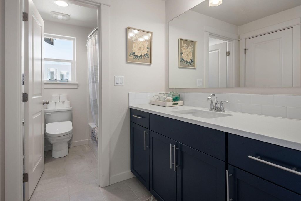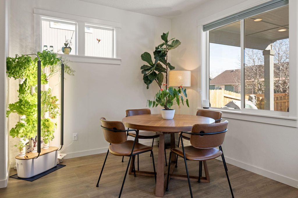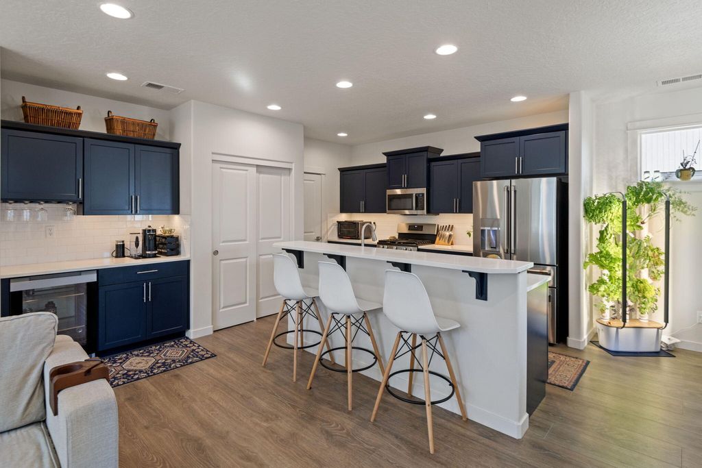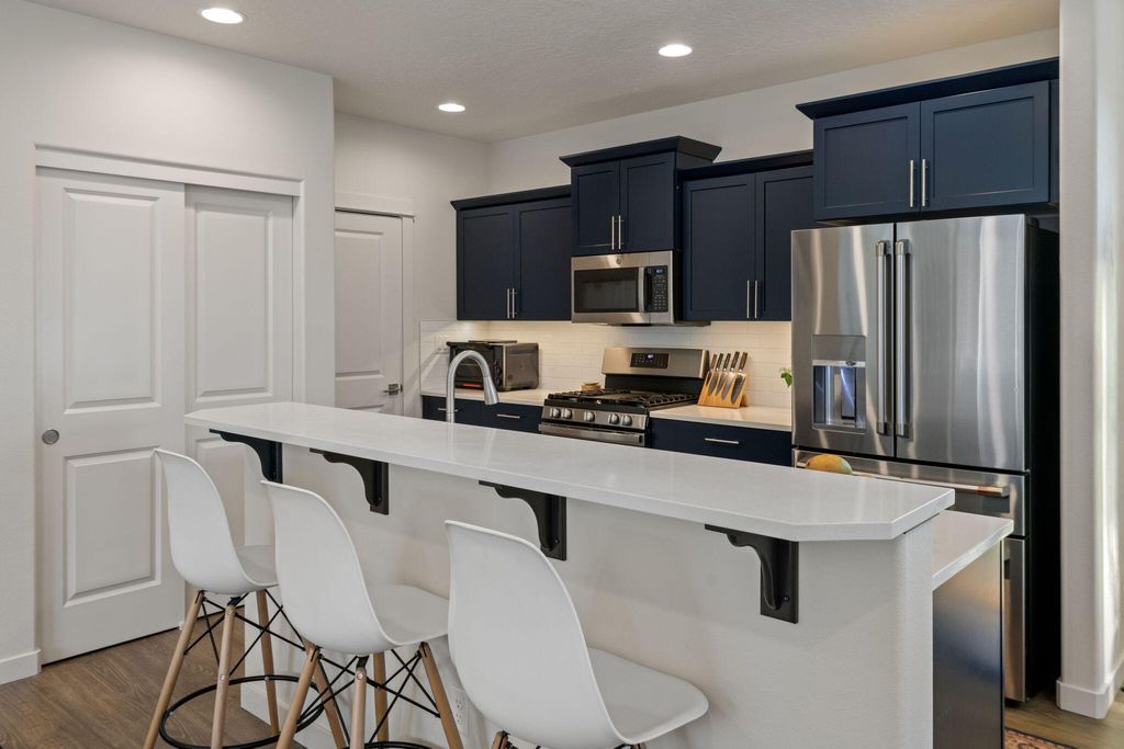 Better than new! Enjoy calling this two story with Cascade Mountain views from the second level your new home. You'll be hard pressed to dare park inside this 2 car garage with a fresh professionally installed polyurethane garage floor coating and powder coated MDF custom cabinets in garage. The kitchen features matching appliances including GE Cafe beverage bar & full size refrigerators; sizable pantry, eat up breakfast counter and dining area that leads to the covered oversize back patio. Costco Graber blinds throughout home: upstairs bedrooms - blackout + channels. The second level also features toto bidet toilets, laundry room with sink, Jack & Jill bathroom and a tiled primary shower. You truly must see in person.
