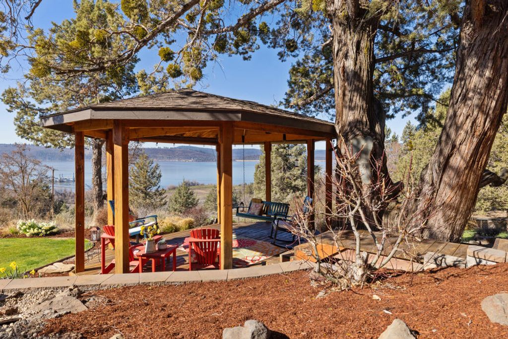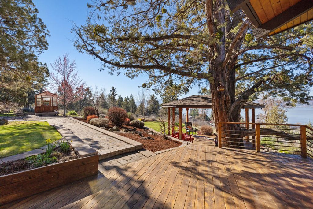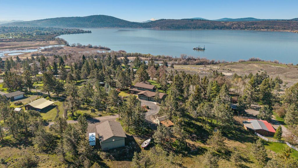 Perched in a coveted Sunset Beach neighborhood, this private 4-acre retreat offers expansive views of Klamath Lake as the sun sinks towards mountain range and horizon. Windows frame gracious lake vistas that greet you from many rooms. The property is thoughtfully developed: a 1200-square-foot shop and 4 plus vehicle garage, plus manicured landscaping that enhances privacy. A panoramic viewing deck with spa invites sunset moments, while dedicated greenhouse and gazebo viewing areas provide year-round enjoyment of the natural setting and wildlife.