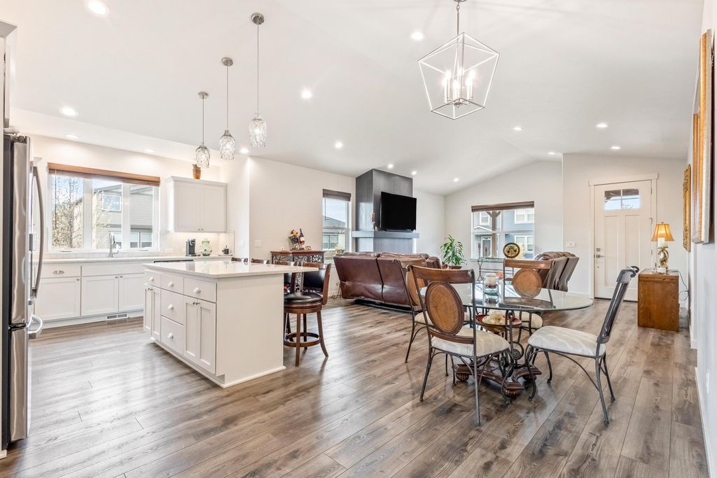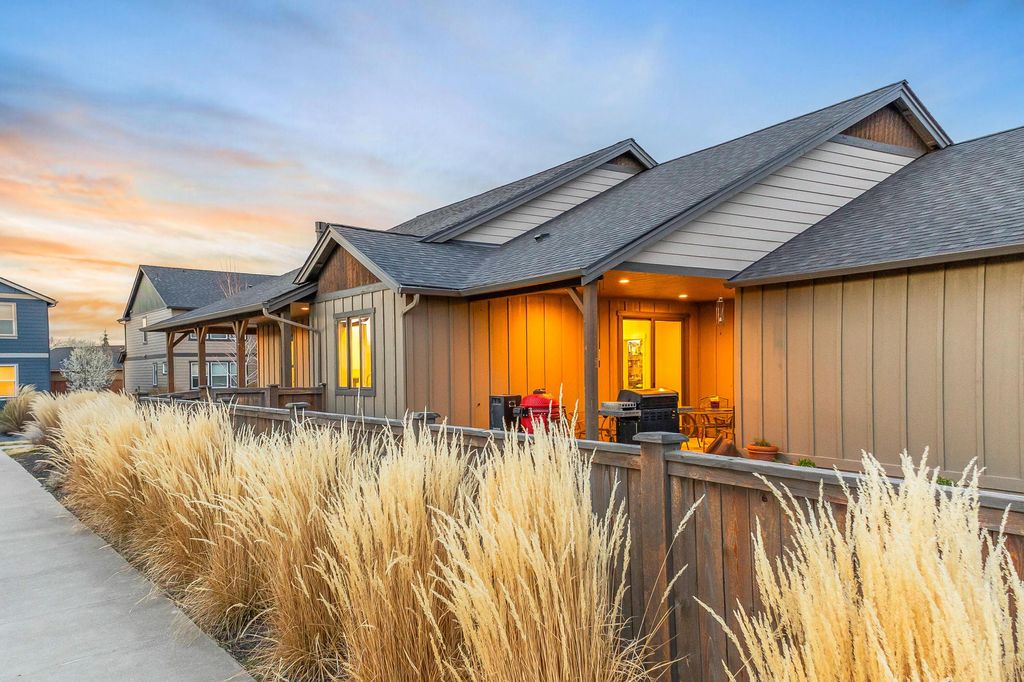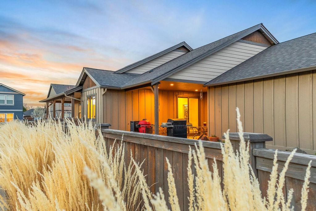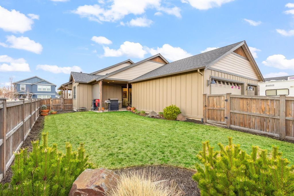 Better than new single-level home in Ironhorse! This beautifully maintained 3 bed, 2 bath home sits on a fully fenced corner lot with a rare 3-car alley load garage. Lightly lived in and completely turnkey, it features designer finishes throughout, solid surface countertops, LVP flooring, and a vaulted open-concept great room with an inviting island kitchen, perfect for entertaining. Enjoy outdoor living year-round with a covered front porch and back patio, surrounded by stunning, well-established landscaping. Earth Advantage Certified for efficiency and comfort. Take in partial valley views and enjoy quick access to Barnes Butte trails. Pride of ownership shines, this one is move-in ready and truly stands out!