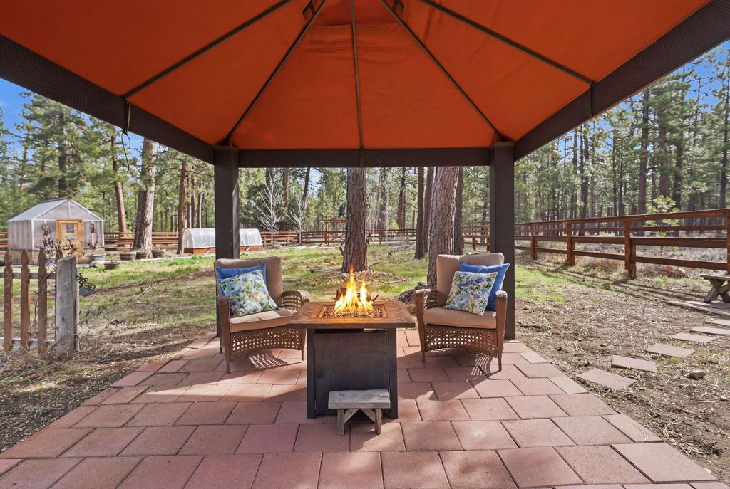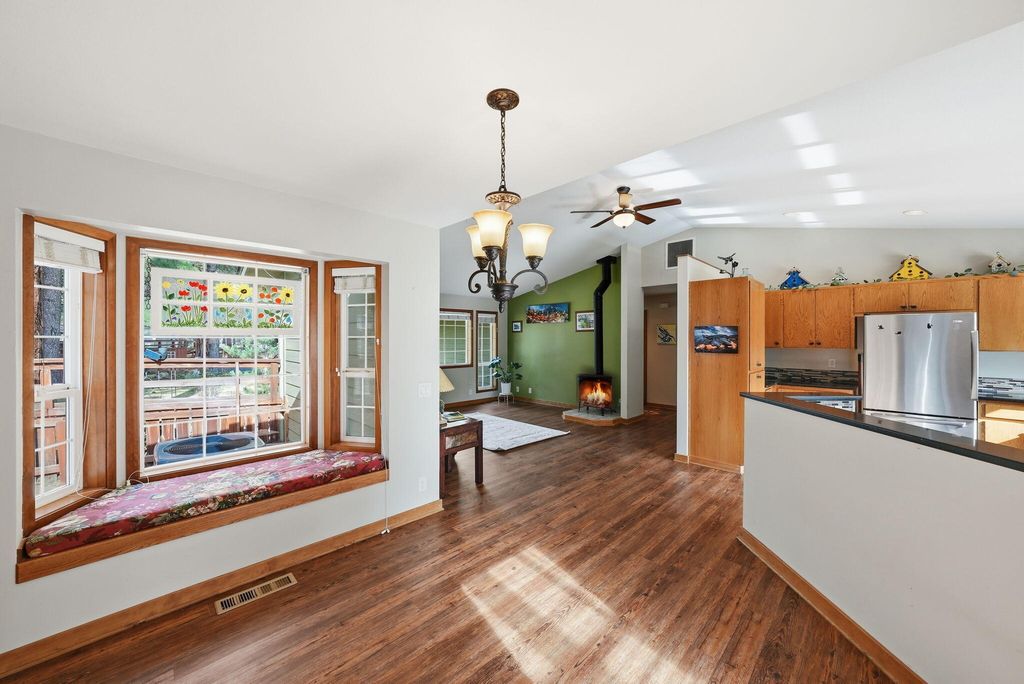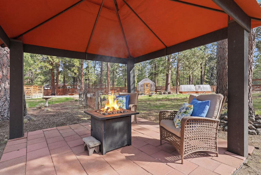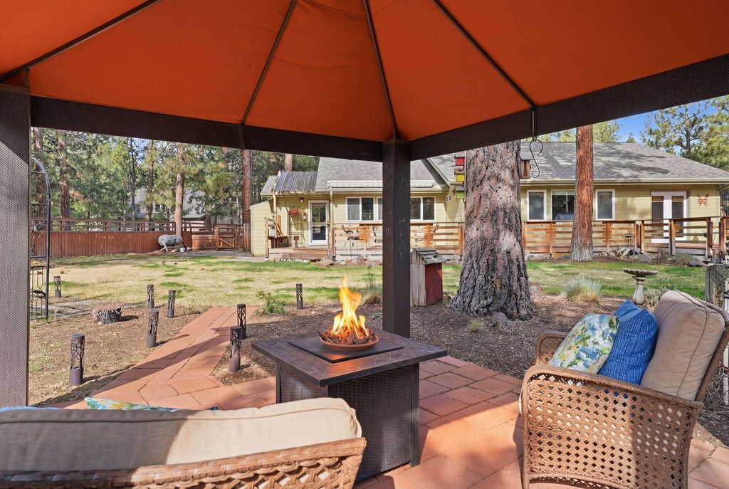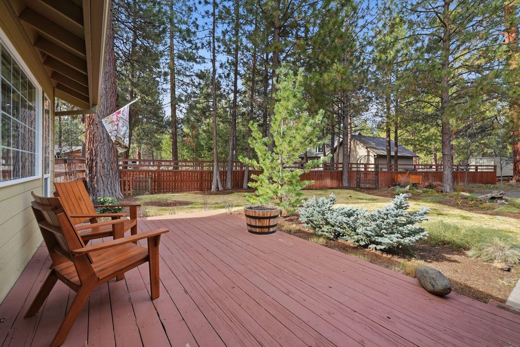 Backing to the Deschutes National Forest, this beautifully updated single-level home offers 3 beds, 2 baths, and a bright open layout with vaulted ceilings connecting the kitchen and great room--perfect for entertaining or everyday living. Recent upgrades include new vinyl flooring, fresh carpet, and a refreshed primary bath featuring an updated shower. Granite countertops throughout the kitchen and bathrooms add a clean, modern finish. Set on .62 acres, the property provides space and privacy with a large back deck, covered fire pit area for year-round gatherings, RV parking, and a paved driveway. Located in the desirable Tollgate community, enjoy amenities including a community pool, tennis and sport courts, scenic walking trails, and direct access to the National Forest right from your backyard--ideal for hiking, biking, and endless outdoor adventure.