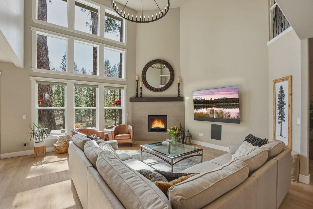 This premier creekfront estate in Timber Creek offers a rare blend of secluded privacy & walkable convenience to downtown Sisters. Bordering Whychus Creek & a protected greenbelt, the home has been meticulously updated with designer lighting & modern flooring. The open-concept great room serves as the heart of the home, featuring floor-to-ceiling windows that bathe the space in southwestern light while framing serene water views. The chef's kitchen is equipped with a generous quartz island & a walk-in pantry, perfect for entertaining. On the main level, the primary suite acts as a true sanctuary, complete with a spa-inspired bath, a Finnish sauna, & a dedicated office. Upstairs, three guest bedrooms & a large bonus room provide ample space for multi-generational living. The outdoor grounds feature a fire pit & hot tub set against mature landscaping, while the epoxy-floored garage adds functional workspace. This is a refined, move-in-ready retreat in an irreplaceable natural setting.