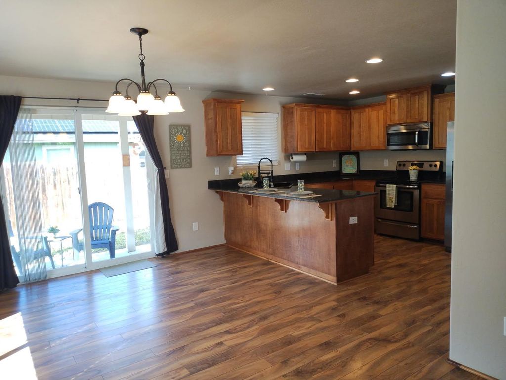 Peace be with you in this BETTER than new single level easy maintenance custom home! Special appointments thru out! Featuring covered porch and back patio. This tranquil home on a dead end side street is literally minutes from all amenities! Located at the gateway of ALL the renowned mountain lakes Oregon is famous for! Short distance for wonderful adventures~ camping, fishing and hiking! Enjoy your stay-cation lifestyle on the covered porches patio in this little slice of paradise, drink in breath taking Mt Mcglothin in the horizon! Super floor plan, coves and arches give a custom touch, smaller lot for easy living. Enjoy the picturesque scenery from abundant windows thru out this single level beauty! Superb location offers the serenity of a country feel, but you can be to whatever you need in just minutes. This home has all the boxes checked. Wonderful location, condition and layout. Granite, lots of storage, laundry/mud room, plus pantry & over sized walk in closet! Peaceful home!
