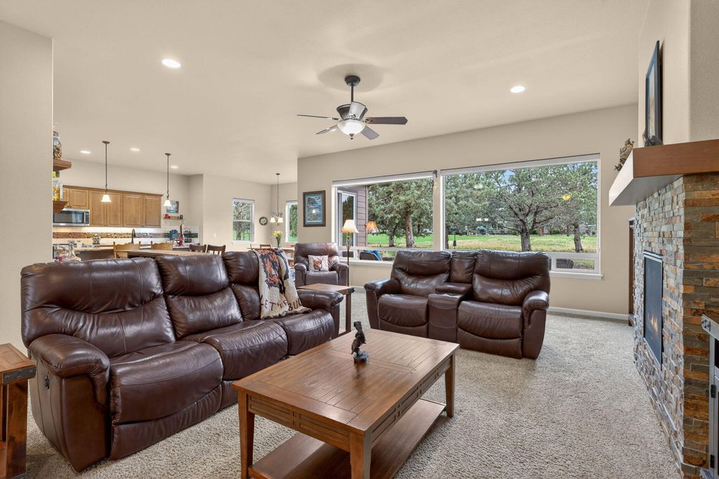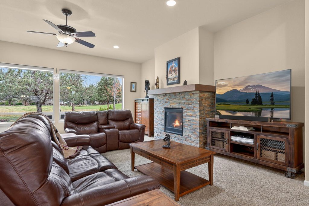 Offered for the 1st time in the 55+ community of The Falls at Eagle Crest Resort, this beautifully maintained home sits on the 11th tee box, offering golf course views & a true Central OR lifestyle. Featuring 3 Bed,2.5 Bath+ an office, the open layout is designed for everyday living. The great room showcases expansive windows, while a gas stone-tiled fireplace anchors the open-concept design w/ warmth & style. The chef kitchen boasts granite countertops, custom cabinetry & an extended counter - perfect for coffee bar or entertaining. The spacious primary suite offers private patio access & a spa-like ensuite w/ soaking tub, tiled shower, & dual vanity. Enjoy year-round outdoor living w/ a freshly painted exterior (2022), 220V hot tub outlet, & propane stub for BBQ. The 3-car garage is temp-controlled & includes an additional 4 ft. of depth, perfect for your workshop, golf cart, or extra storage. Community clubhouse amenities complete this resort-style living experience!