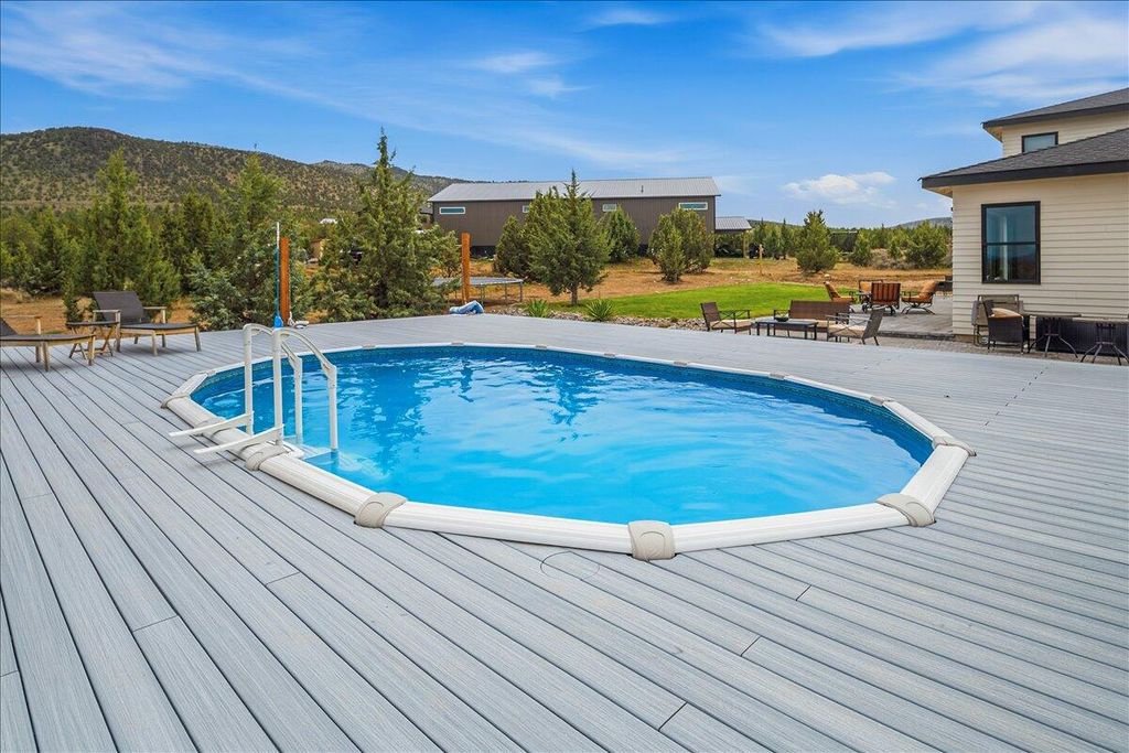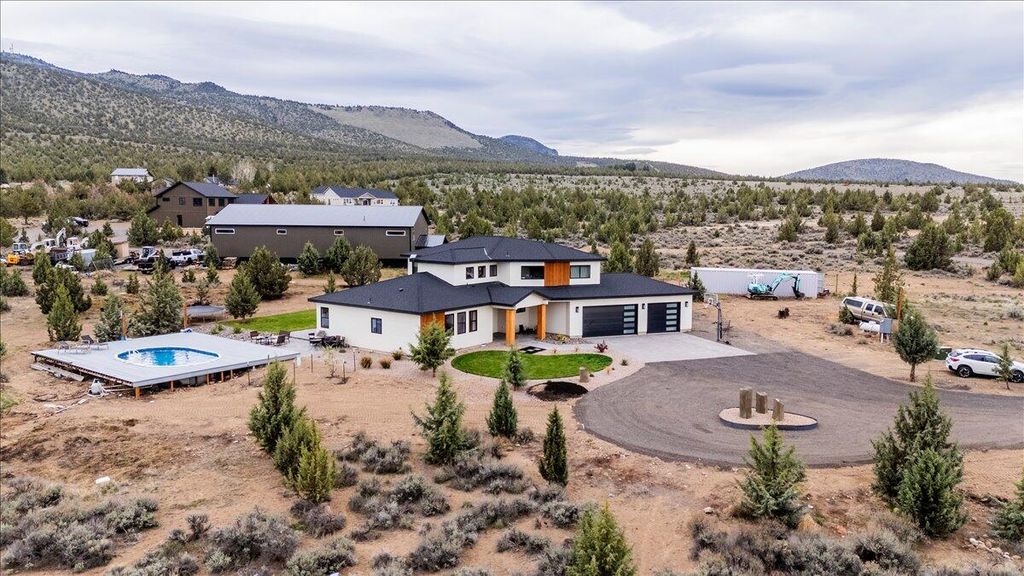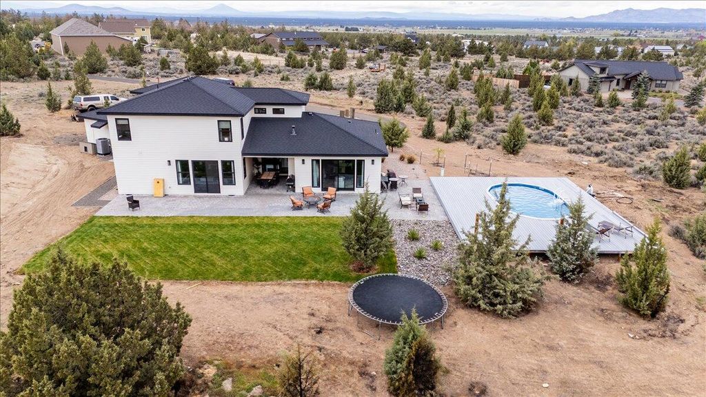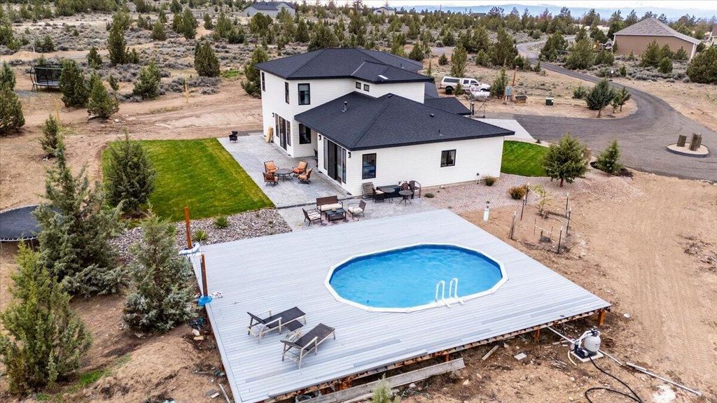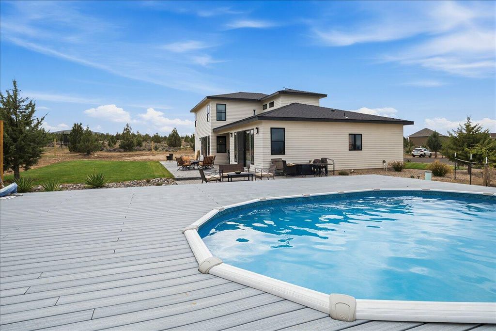 Mountain views from 5 acres in Powell Butte. This 2020-built home delivers a thoughtful layout with the primary suite on the main level and 4 bedrooms and 2.5 bathrooms. Open living spaces flow with natural light throughout. A 3-car garage provides room for vehicles, toys and workspace. Head out to a patio with views of Powell Butte and the surrounding high desert. Splash around in the pool with taking in the beautiful mountain views. The property sits on a quiet stretch of Powell Butte with real luxury and space. Minutes from Prineville and an easy drive to Bend or Redmond for shopping, dining and recreation. Incredible newer home on acreage with views worth showing up for.