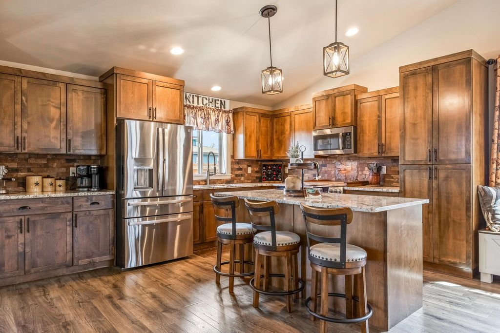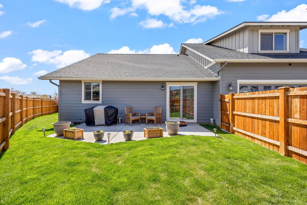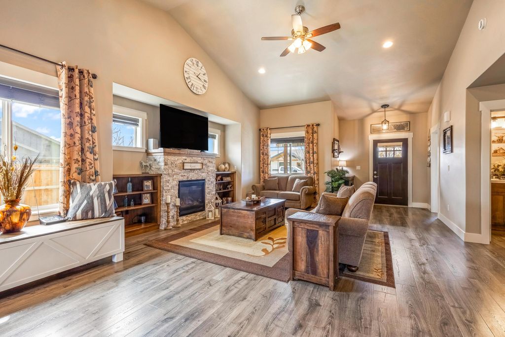 Custom built home in Iron Horse just minutes to the Barnes Butte Trails. This home is unlike all the rest and is impeccably maintained. Vaulted ceilings welcome you into the great room w/LVP flooring, gas fireplace with stacked stone surround, and windows on every wall. The kitchen is the heart of the home and was just recently update w/solid wood cabinets, backsplash, granite counters, island, coffee bar, & stainless appliances including a gas range. Formal dining space with slider out to back patio w/views of Barnes Butte. Impressive primary suite on the main level w/double vanity, granite counters, custom tiled shower/tub, & walk-in closet. There are three more additional bedrooms with oversized closets. The laundry room comes equipped with utility sink, barn wood accents, and plenty of room for storage. Brand new A/C unit keeps the home nice and cool in the Summer months. Built by Rogue Builders who pride themselves on excellent quality and construction. This is a Must See home!