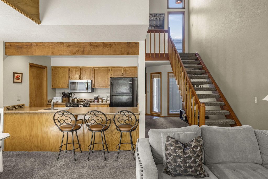 Warm and inviting, this beautifully curated Quelah condo captures the essence of Sunriver living with rich wood accents, exposed beams, and soaring vaulted ceilings that create an open, airy feel. The light-filled 3-bedroom, 2-bath layout offers a seamless flow, centered around a cozy living room with a fireplace--perfect for relaxing after a day of adventure. The kitchen is both functional and welcoming, featuring bar seating for casual dining or entertaining. Step out onto the private deck off the main living space to enjoy the peaceful setting and fresh Central Oregon air. Privately tucked within the community yet just moments from Sunriver's shops, dining, and recreation. Quelah owners enjoy access to a private pool and tennis courts, completing the resort-style lifestyle. Come see it for yourself!