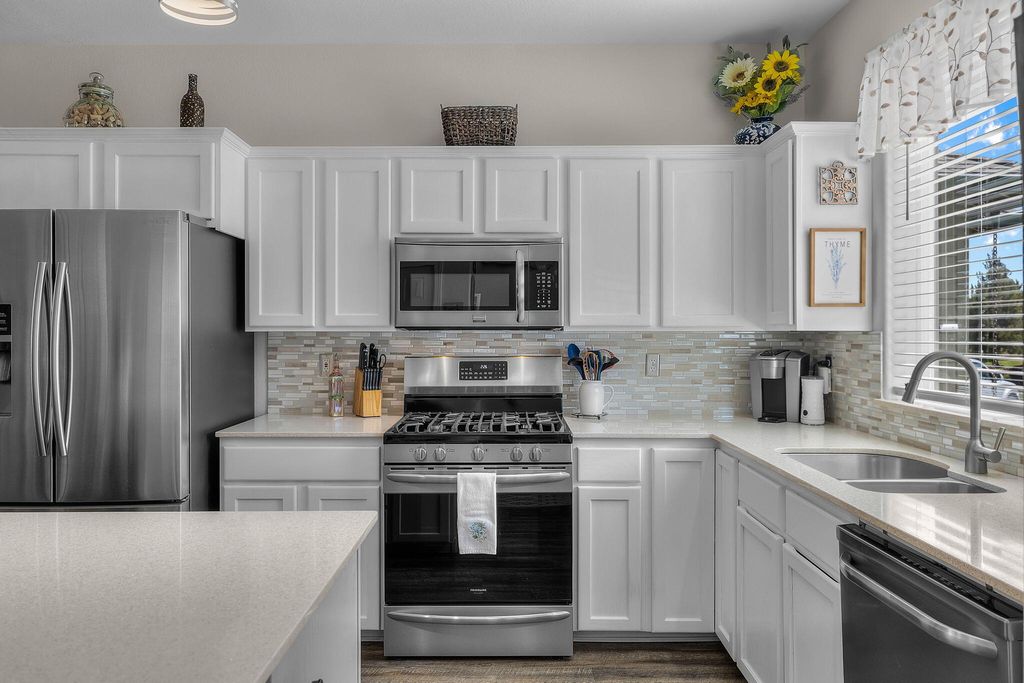 Light and bright, fully updated townhome in desirable Eagle Crest Resort! This beautifully refreshed home features quartz countertops, a stylish glass tile backsplash, and crisp white kitchen cabinetry. The kitchen is complete with stainless steel appliances, while newer flooring enhances the main level and all bathrooms. Each of the three bathrooms boasts updated vanities.