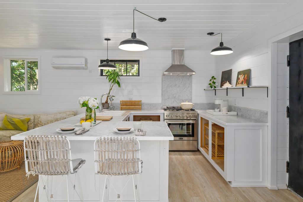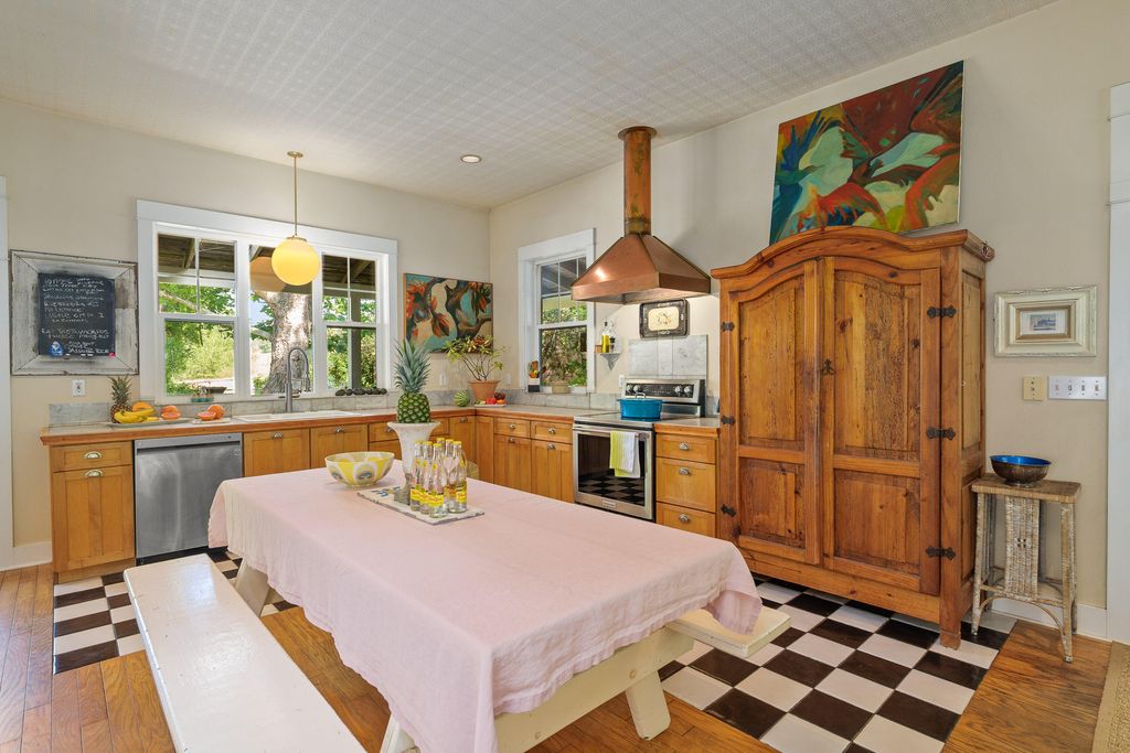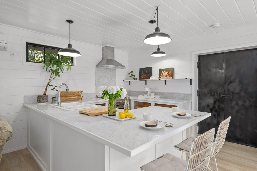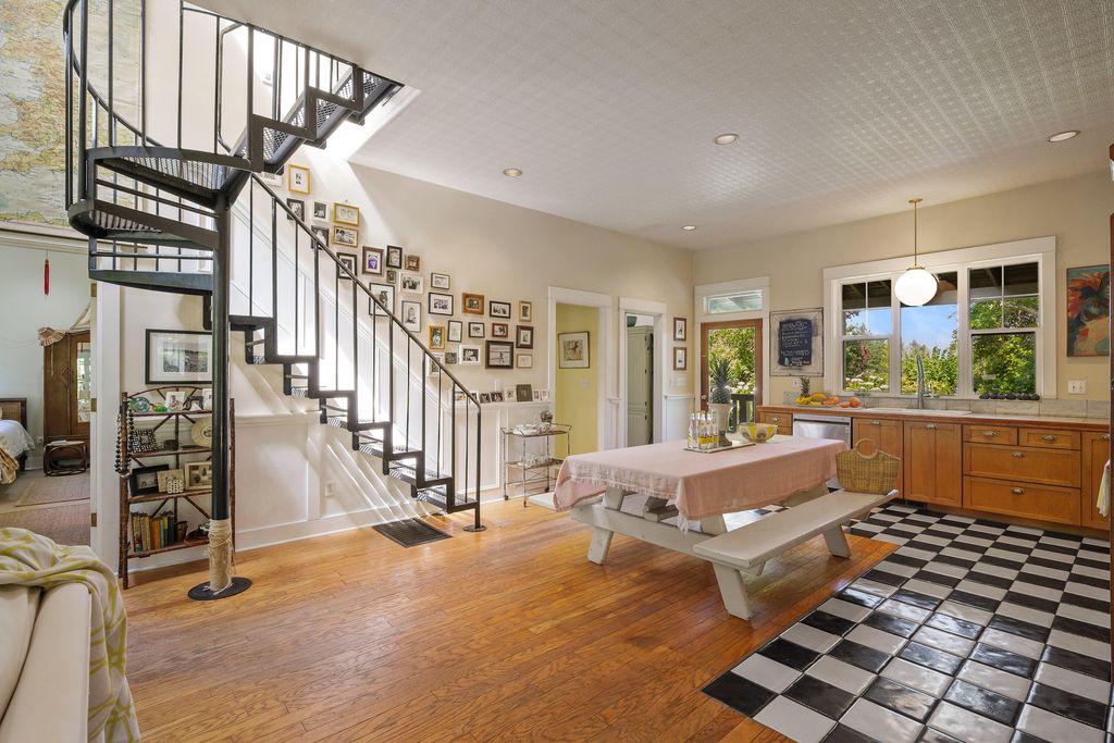 spacious kitchen, wraparound porch, and a restful primary suite with deck access. Upstairs, a loft style third bedroom adds flexibility. A modern guest house includes its own kitchen, living space, and lofted bedroom. Complete with greenhouse, workshop, large in-ground pool, and new roof in 2025, this is a rare lifestyle property rich in water, privacy, natural beauty, and inspiration, offering the ideal blend of comfort, function, and connection to the land, all in a close to town setting that feels private and serene.