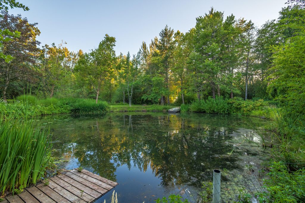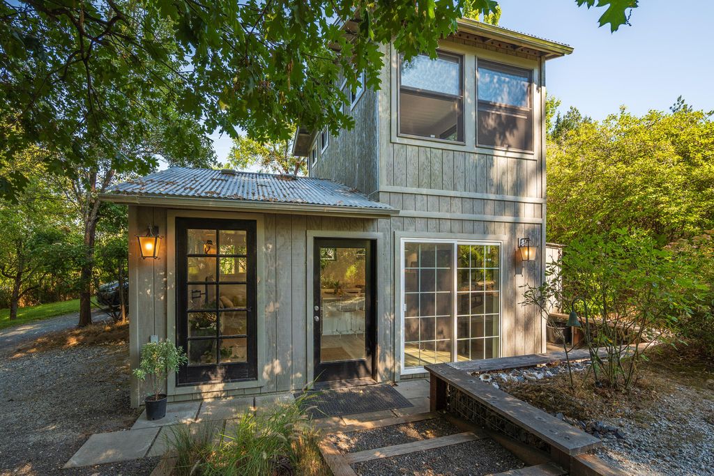 downtown Grants Pass, yet once inside the gate it feels like a world away. Set on 4.79 fenced acres, this birders' paradise features a strong well, 3 large ponds, irrigation rights, mature trees, fruit trees, grapevines, blooming perennials, organic irrigated garden space, and meandering walking paths. The custom home offers tall ceilings, abundant natural light, serene views, a