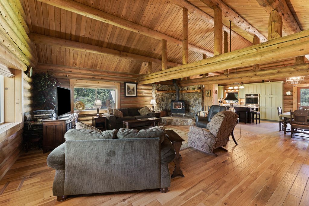 Meticulously maintained log cabin home with miraculous Mountain Views sits on a fully usable and level 2.41-acre lot offering privacy and an incredible mix of rustic character and modern upgrades. The 2-story home features an open floor plan with rich hardwood floors, updated windows that flood the space with natural light, and a beautifully remodeled kitchen complete with granite countertops, ample cabinetry, and a cozy wood stove--perfect for relaxing evenings. Enjoy the peaceful surroundings and gorgeous mountain views from the covered front porch or unwind on the spacious back porch that looks out over government-owned land, ensuring unobstructed nature views. Outside, the property continues to impress with mature landscaping, full irrigation, a separate two-car garage, a 48x48ft shop with an included vehicle lift for projects or storage, a greenhouse, and even a hot tub. This property is a rare gem that truly has it all. Move-in ready & lovingly cared for.