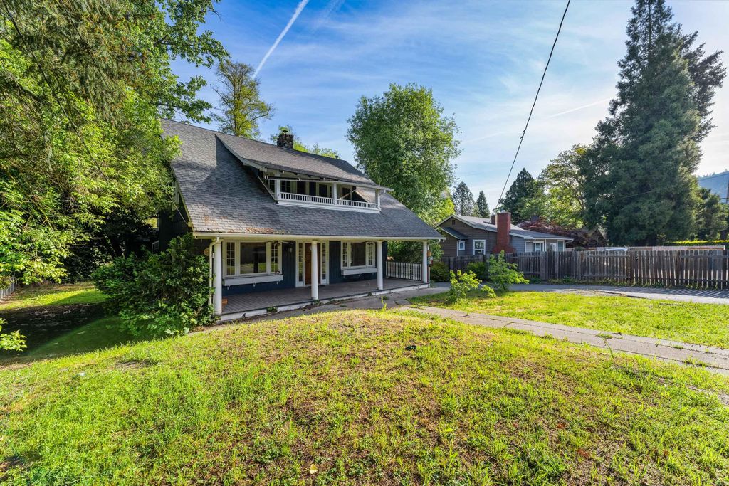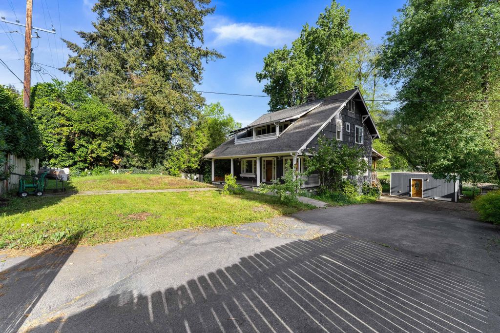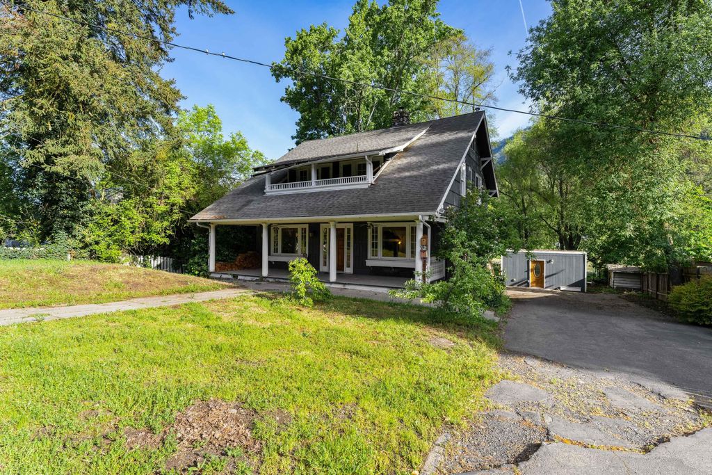 Riverfront opportunity on the Rogue! Ideally located between Grants Pass and Rogue River, this charming Craftsman sits on 1/3 acre with direct river frontage. Featuring 3 bedrooms, 2.5 baths, and a finished attic space (additional 544sf that is not included in living square footage), the home offers original wood floors, classic built-ins, certified woodstove and a large covered front porch full of character. Enjoy peaceful river views from the spacious covered back deck. Gated entry, ample parking for RV or boat, plus a detached storage building add flexibility. A rare chance to own riverfront for under $200/sf--bring your vision and make it shine!