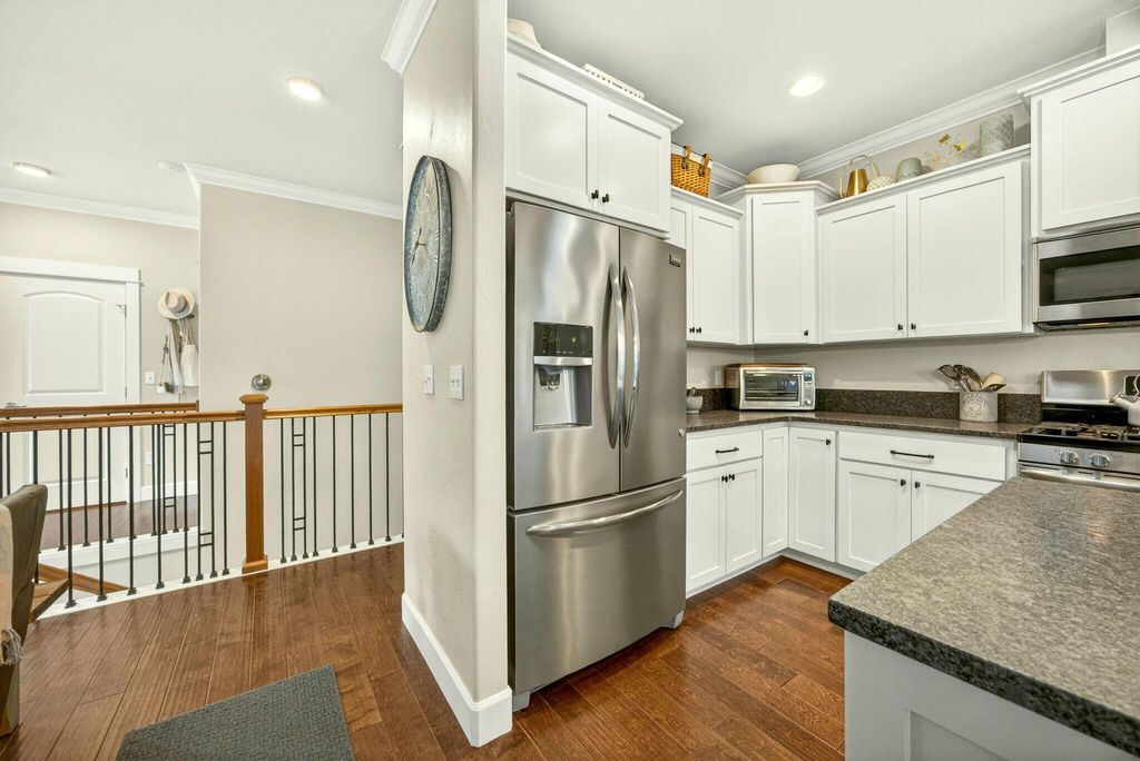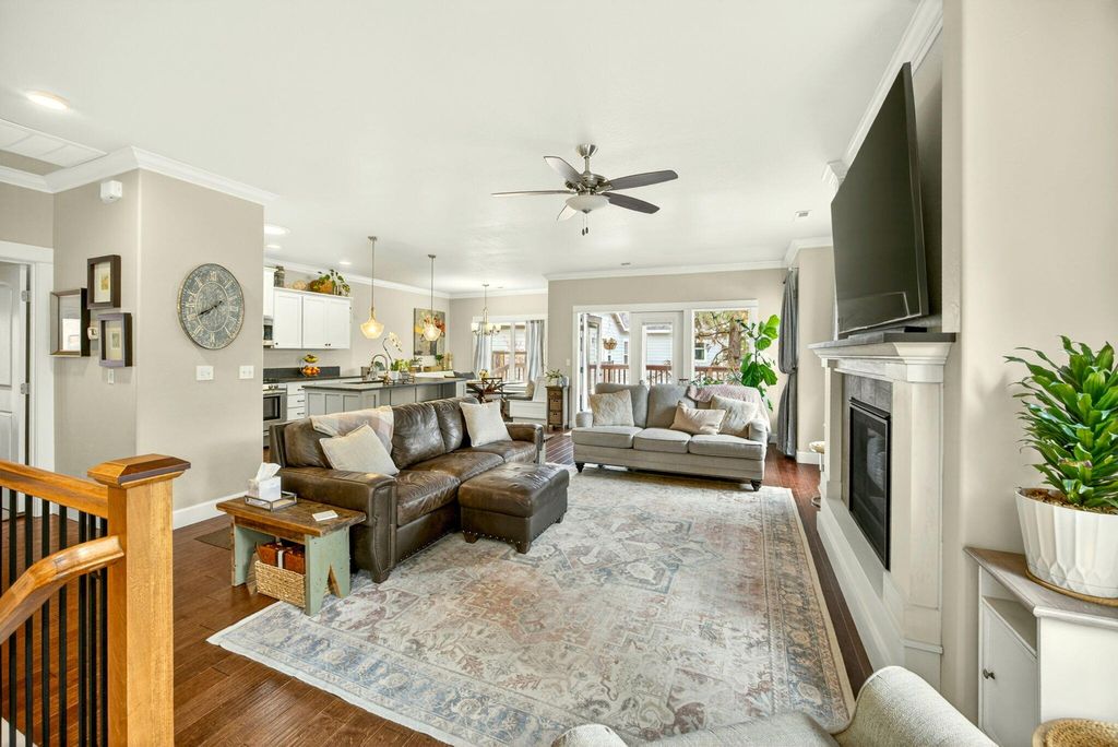 Beautiful contemporary Craftsman-style home in a quiet location close to historic downtown Jacksonville & woodland hiking trails. This well-maintained newer home features an open-concept floor plan w/ engineered hardwood floors, a cozy fireplace, & abundant natural light. The kitchen offers granite countertops, stainless steel appliances, custom cabinetry, & a spacious island ideal for entertaining. The main level primary suite includes a walk-in closet, double vanity, & tile shower. The main level also features a powder room & laundry room. The lower level could function as a multi-family set up as it has a separate entrance, & includes a large den/family room, two bedrooms, & a full bath. The property is low maintenance but perfect for entertaining w/ multiple separate outdoor spaces. Enjoy tasteful easy-care landscaping, a welcoming side porch on both levels, a large private rear patio, and an attached two-car garage--perfect for comfortable, easy living in a desirable location.