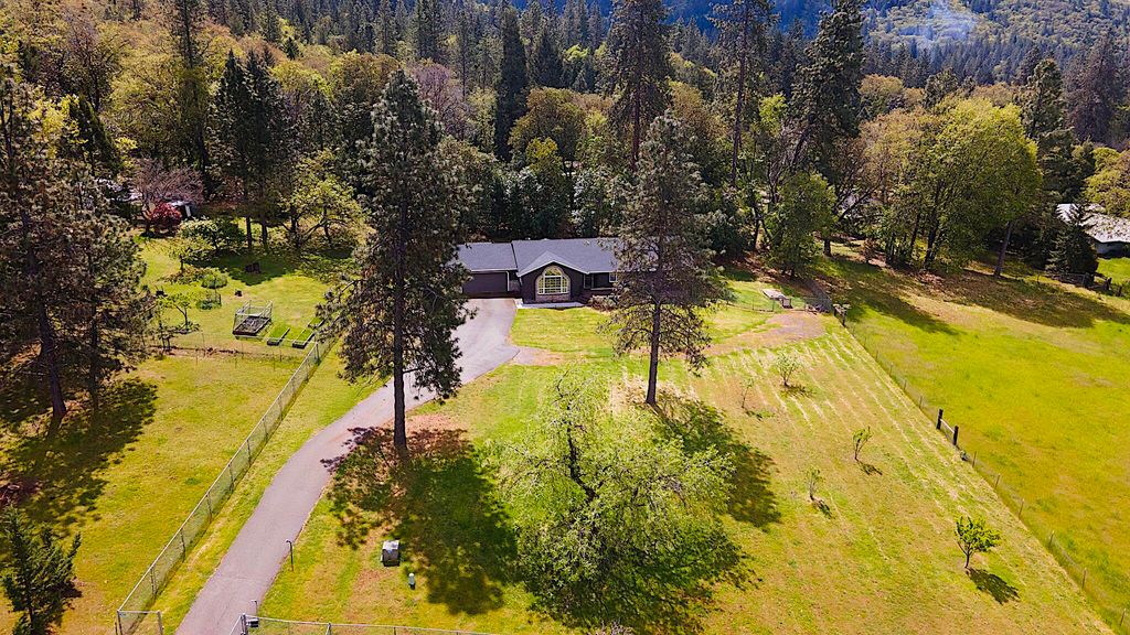 Enjoy stunning mountain views from this custom home set on just over an acre! This 3 bedroom (currently 3rd used as an office), 2 bath home features a spacious living room with large windows that bring in lots of natural light and showcase the surrounding scenery. The kitchen and dining area are thoughtfully designed, while the spacious primary suite includes a walk-in closet and private en suite. The home has been well maintained with newer flooring, new HVAC system, appliances, and decks. This fully fenced and gated property also includes a paved driveway, wonderful back patio, fruit trees, and a garden area. Come experience the gorgeous views and beautiful setting for yourself -- you won't want to leave!
