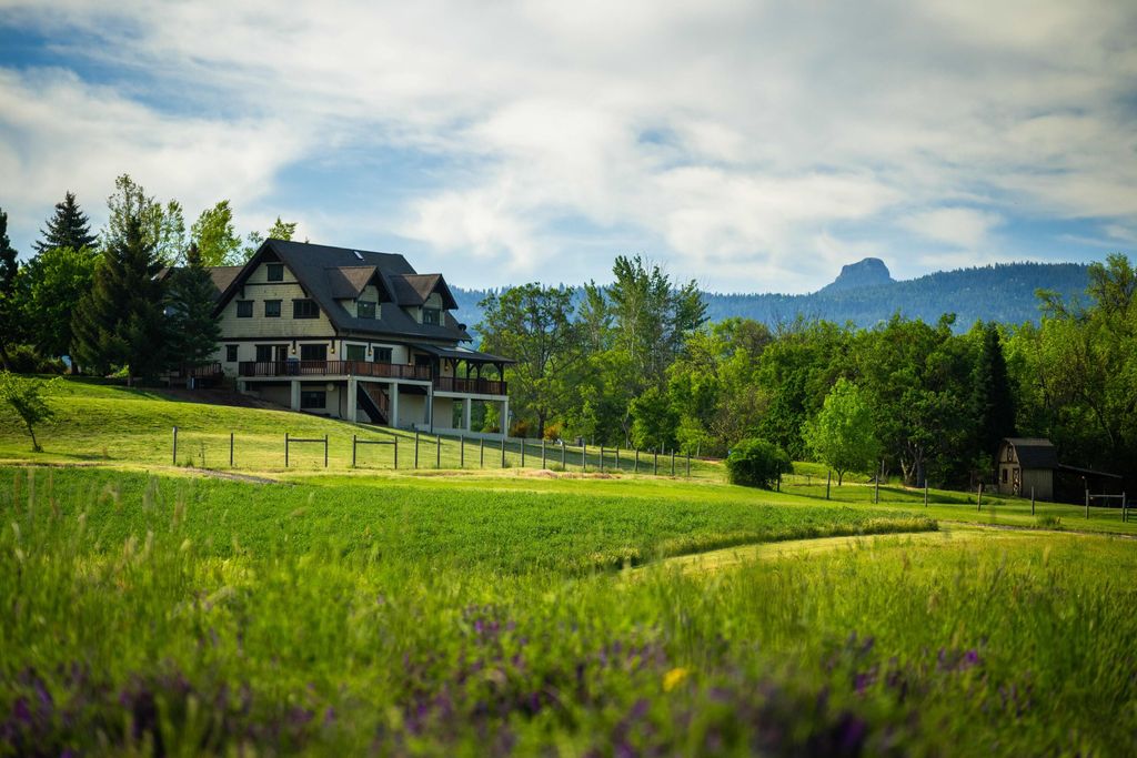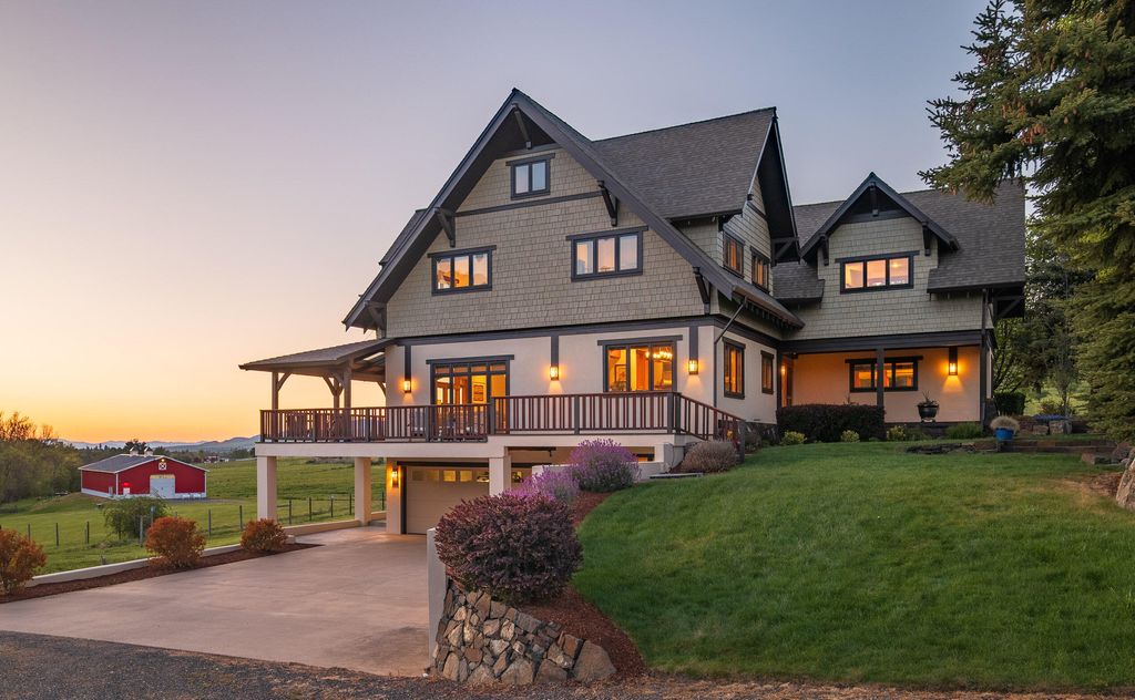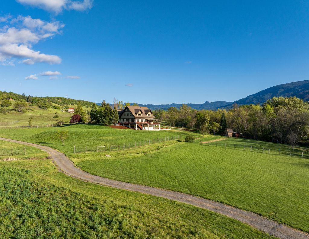 Located just outside Ashland, this property offers a rare blend of natural beauty, water, quality improvements, and convenience. The custom built home is thoughtfully positioned to capture expansive views across the surrounding valley and toward distant mountains. This elevated country estate draws from a Northwest lodge aesthetic, offering welcoming living spaces, a spacious multilevel layout and a seamless indoor outdoor connection with expansive outdoor living spaces. A picturesque stretch of Neil Creek framed by mature trees adds character and tranquility. Gently rolling topography, lush pasture, and water rights support a variety of Ag uses. A recently constructed 5,000 SF barn complements the property and offers outstanding flexibility for equipment, hobbies, or recreational use. Ideal as a homestead or simply an elegant place to enjoy connection to the outdoors, this is a property that captures the essence of Southern Oregon living while remaining just minutes from Ashland.