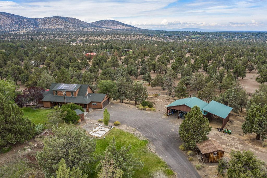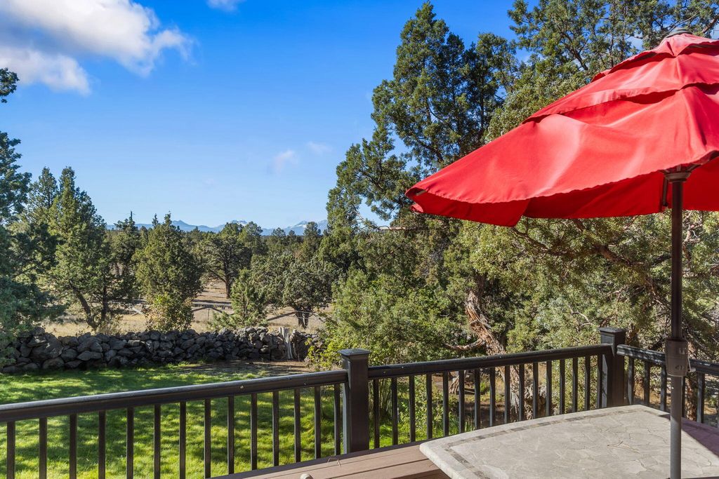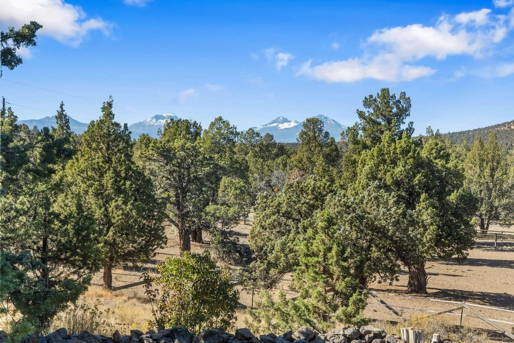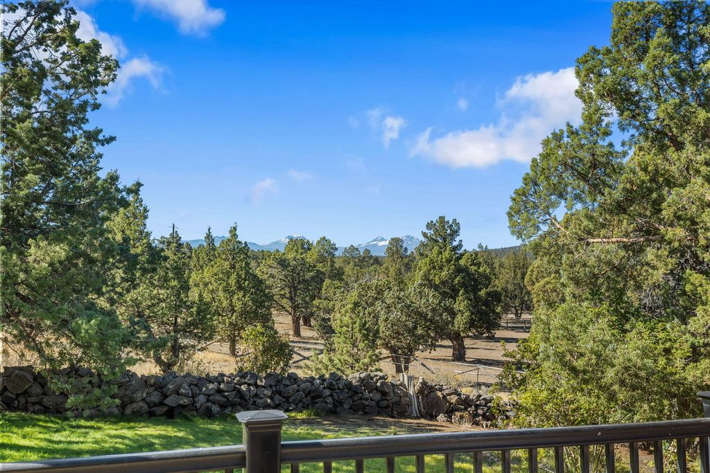 Private 20-Acre Retreat in the coveted golden triangle. Experience unmatched privacy & sweeping Cascade Mountain views from this beautiful estate, ideally located between Bend & Redmond. Perched on a sloped lot, the home overlooks fully fenced & cross fenced grounds, creating a serene & secure setting.