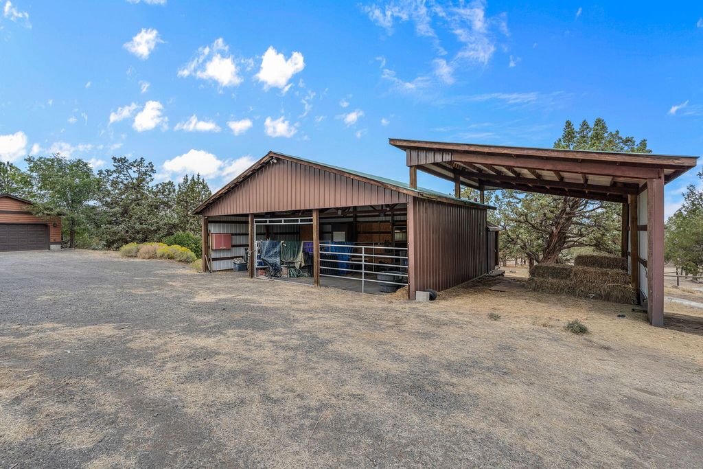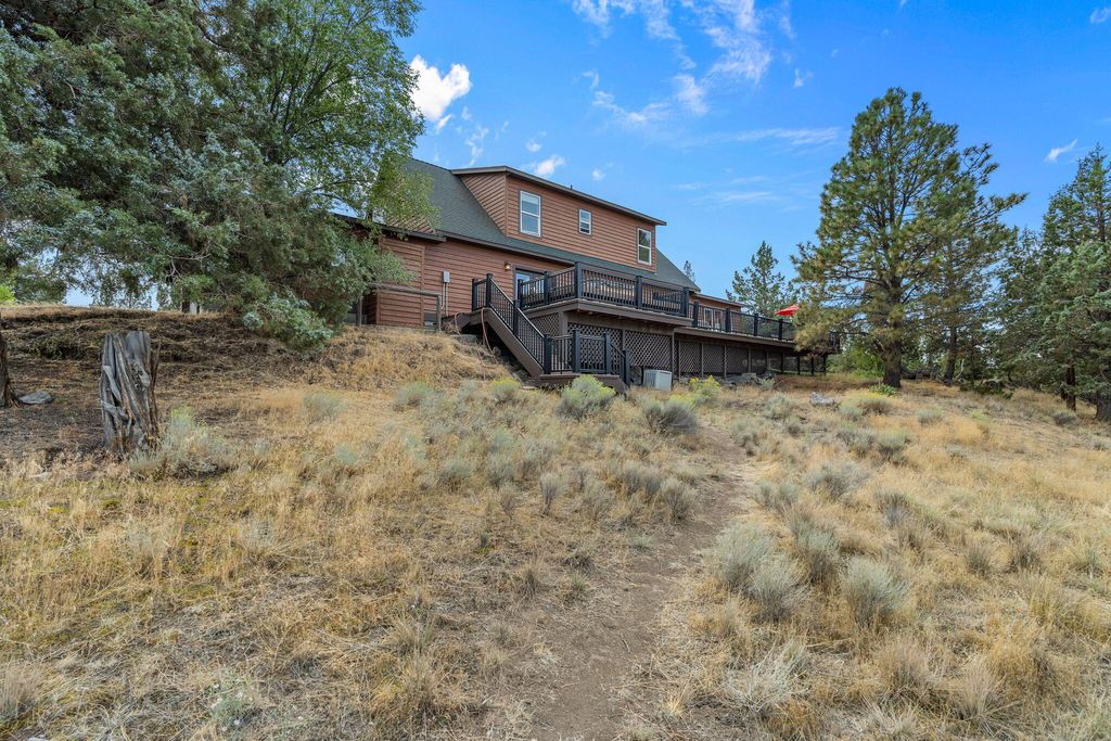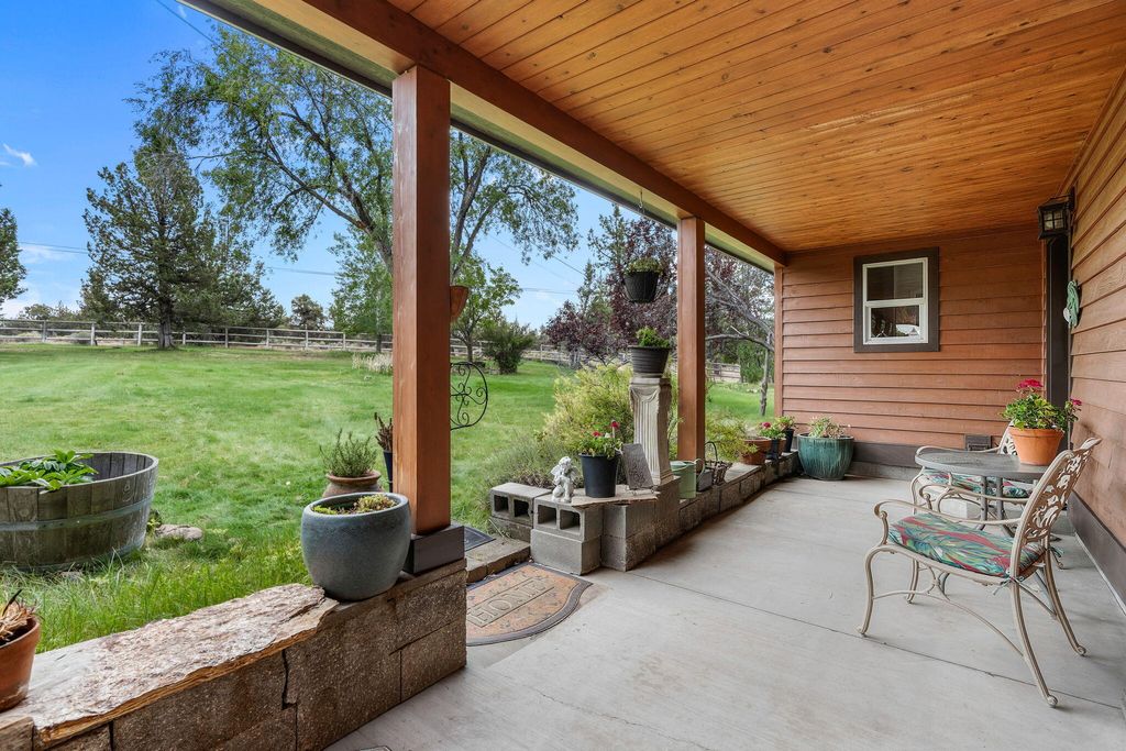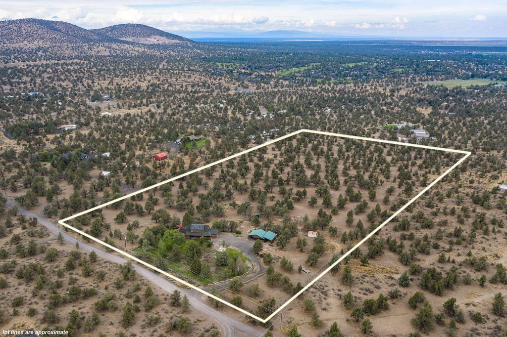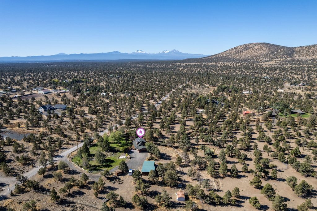 Private 20-Acre Retreat in the coveted golden triangle. Experience unmatched privacy & sweeping Cascade Mountain views from this beautiful estate, ideally located between Bend & Redmond. Perched on a sloped lot, the home overlooks fully fenced & cross fenced grounds, creating a serene & secure setting.