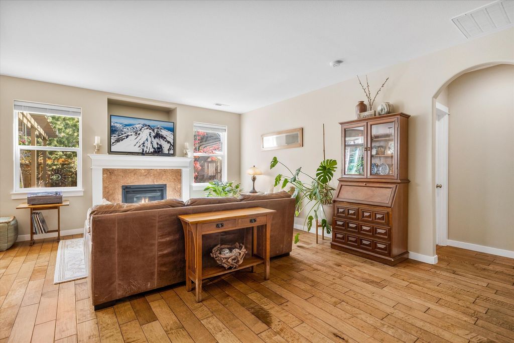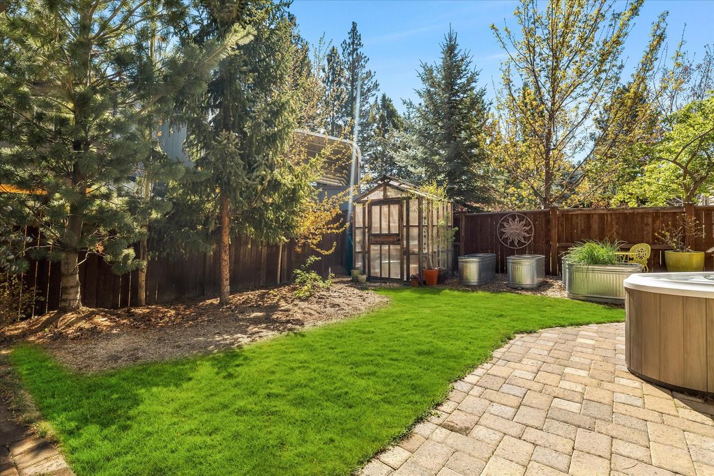 This tidy and updated home is in a fantastic SW Bend neighborhood off of Brookswood between the Old Mill District and the new market in Brookswood Plaza. Enjoy one level living with three bedrooms, one with double French doors. The wood floors in this home gleam, the backyard is a peaceful sanctuary, and the space is updated and inviting. Nearby is a community pool that is a great gathering spot for neighbors and friends. This home has been loved by each owner for the past 16 years. The backyard has an amazing outdoor living space with pavers and mature plantings. Included in the sale is a hot tub and the perfect little greenhouse. AC was added three years ago, to keep this house comfortable all summer. But the breeze and birdsong from the backyard is delightful. Thoughtful updates, and regular maintenance make this home very special. The view of Mt Bachelor from the front porch adds to the livability and charm of this home.