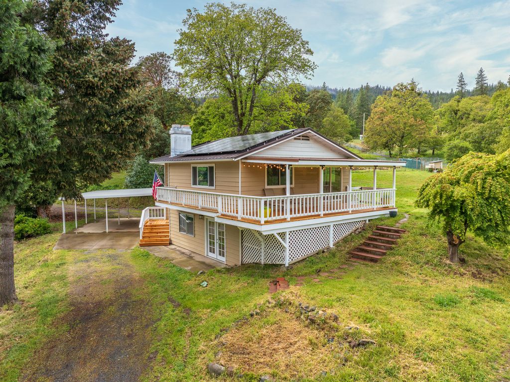 Located in the scenic Applegate Valley, this 5 acre, fully irrigated rural property offers privacy, usability, and a true Southern Oregon lifestyle. The 2,726 sq ft home features 3 bedrooms and 3 full baths with a flexible split level floor plan. Light-filled living spaces create a warm and inviting atmosphere, with a heat pump for year round comfort plus wood heat in both living rooms. The new back deck is ideal for relaxing, entertaining, and taking in the surrounding mountain and territorial views. Multiple additional rooms offer space for storage, an office, hobbies, guests, or flexible use. The fully fenced property includes established pasture, irrigation rights for all 5 acres, a garden area, gated entry, dog run, RV parking, and outbuildings for added functionality. With usable acreage, room for animals and equipment, and a peaceful rural setting, this property offers the versatility, comfort, and lifestyle buyers seek in the Applegate Valley.