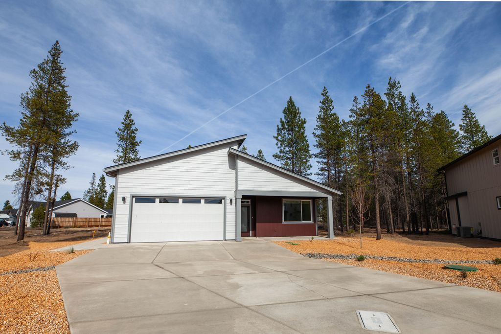 Thoughtfully designed 1,642 sq.ft. Northwest Contemporary home with 4 bedrooms and 2 baths. Lightfilled and open, this home offers oversized windows with blinds, vaulted ceilings, and a spacious open-concept layout. Stylish finishes include granite countertops throughout, durable Hardie Plank siding, and a cozy gas fireplace. This home also features a complete appliance package, including the refrigerator, washer and dryer. Central A/C and energy-efficient construction provide year-round comfort. Enjoy peace and privacy in the fully fenced, landscaped, and irrigated backyard, along with a beautifully xeriscaped front yard on a timed drip system. This Benson floor plan will be move-in ready in September. Ideally located next to Finley Butte Park in La Pine, Oregon. Built by our award-winning local builder delivering custom-level quality.