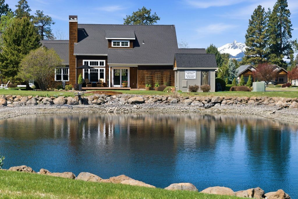 Waterfront, custom finished oasis in sought after Pine Meadow Village. Soaring, 16 ft ceilings and an open single story floor plan, this home is flooded with natural light. Every inch of this charming home has been upgraded. Graced with custom barn wood shutters & mantle, a river rock propane fireplace, lovingly updated kitchen, and serene primary suite, this home is a dream! The private second bedroom/bathroom were not overlooked. Granite counter, custom paint, new flooring/closet systems, etc. Attached is a one car garage with extensive storage, workout space and a man door with a window that brings in light! It's hard to decide which outside treasure to take in first... the covered side porch overlooking the lake, the serene covered front porch that is meticulously landscaped and offers a babbling granite water feature, or the creek and second pond from the back of the home.... Not to mention mountain views and all of the amenities of Pine Meadow Village.