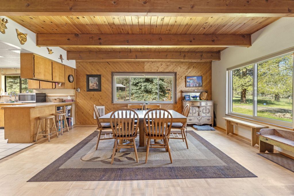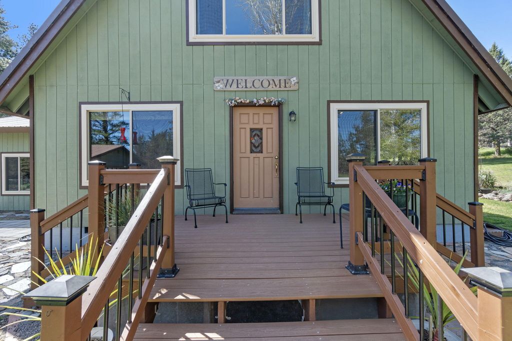 Charming chalet-style custom home on peaceful 2.06 acres in beautiful Keno, OR! This 4 bedroom, 2 bathroom property is perfect for those seeking space, privacy and a connection to nature. Fenced and ready for horses or animals, with a barn & stalls and tons of room to roam. Over-sized garage features a workshop for all your projects! Inside, enjoy a well-built and welcoming home featuring a spacious entry, open living, dining and kitchen area with abundant counter space and a large pantry, plus separate laundry. Flexible layout with a second living space and generously sized bedrooms. Relax in the walk-in tile shower and appreciate ample storage throughout. Recent upgrades include septic in 2020, windows and more. Step outside to an impressive garden and peaceful setting nestled among the trees, bordering BLM land for added privacy and endless outdoor access. Abundant wildlife and birds frequent your property.