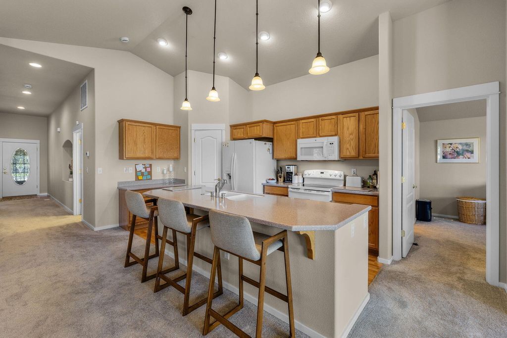 Located in Summer Creek, Redmond's premier 55+ community, this neat-as-a-pin, single-level home has thoughtful living space complete with an open-concept layout, vaulted ceilings, and a spacious living room centered around a cozy gas fireplace. Many updates incl. carpet and interior paint throughout, HVAC system, smoke/CO2 detectors, and TREX deck. The kitchen features an inviting island and breakfast bar, secretary space, and large pantry. Primary suite is separate from guest bedrooms for added privacy, includes a walk-in closet & step-in shower. 2nd bedroom ensuite is perfect for guests. Enjoy pleasant outdoor space with a private back patio and a professionally landscaped yard equipped with front sprinklers. Parking and storage is no problem with an oversized and tidy two car garage. This prime location is situated on the southwest side of town, just minutes from the desirable local amenities that Redmond has to offer!