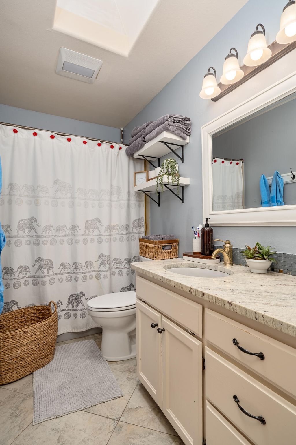 Beautiful East Medford home located in the desirable Lone Pine School District. This 3-bedroom, 2-bathroom home offers 2,400 sq ft of living space on a .25-acre lot with stunning mountain views. Inside, you'll find both a spacious family room and a formal living room featuring impressive 12-foot ceilings and two floor-to-ceiling fireplaces. The well-appointed kitchen boasts granite countertops and ample space for cooking and entertaining. The primary suite offers a spa-like bathroom complete with a jetted tub, separate shower, and dual vanities. Additional flexible space with a large closet is located at garage level -- perfect for storage, a home office, or hobby area with more storage below. Enjoy outdoor living with a covered patio and a generous backyard ideal for family gatherings, plus convenient RV parking.
