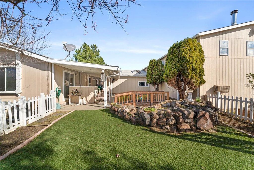 Welcome to a property that's been truly loved and cared for by the same owner since it was built! This beautifully maintained 1998 double-wide manufactured home offers 1,620 sq ft of comfortable living with 3 bedrooms, 2 bathrooms, vaulted ceilings throughout all living areas, and a huge open kitchen and dining space built for gathering. Outside, enjoy stunning low-maintenance front and back yards, complete with a peaceful koi pond and running waterfall--perfect for relaxing mornings with coffee. Bring your RVs, toys, and hobbies because this property features a massive double wise RV/shop space, plus a dedicated rear workshop with its own bathroom and upstairs area already envisioned for a future apartment or guest quarters. Even with all of that, you still have an attached 2-car garage! A rare blend of comfort, function, and dream-worthy potential--this property is just steps away from being your perfect world.
